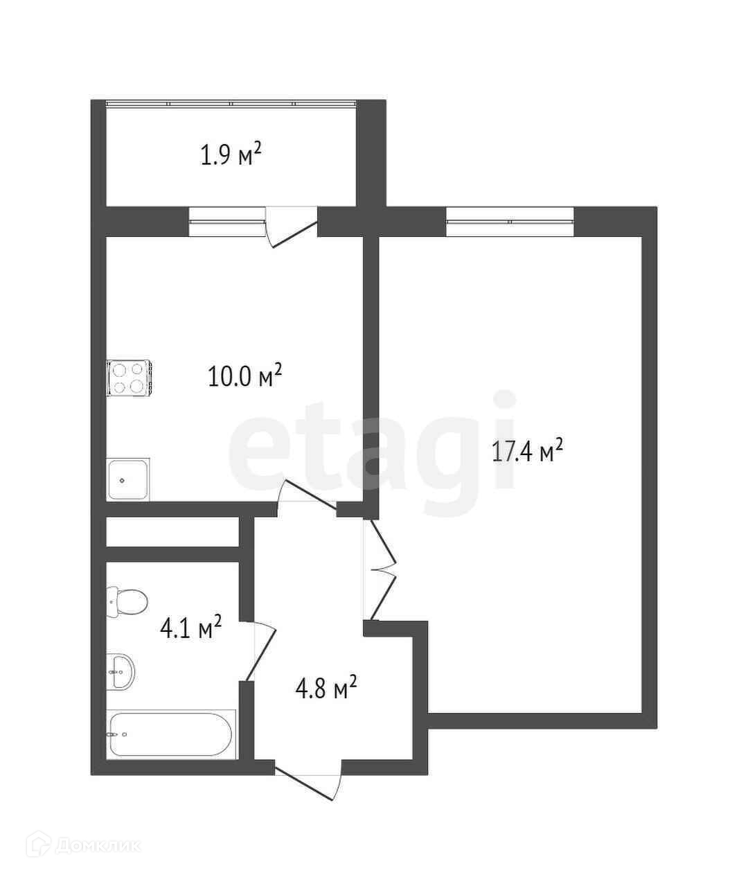 Расположена на седьмом этаже, девятиэтажного дома. Общая площадь 38 кв.м., комната 17.3 кв.м., кухня 9.9 кв.м.