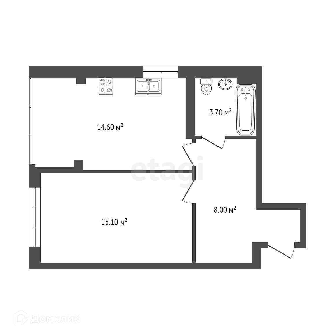 Общая площадь 41.7 м2