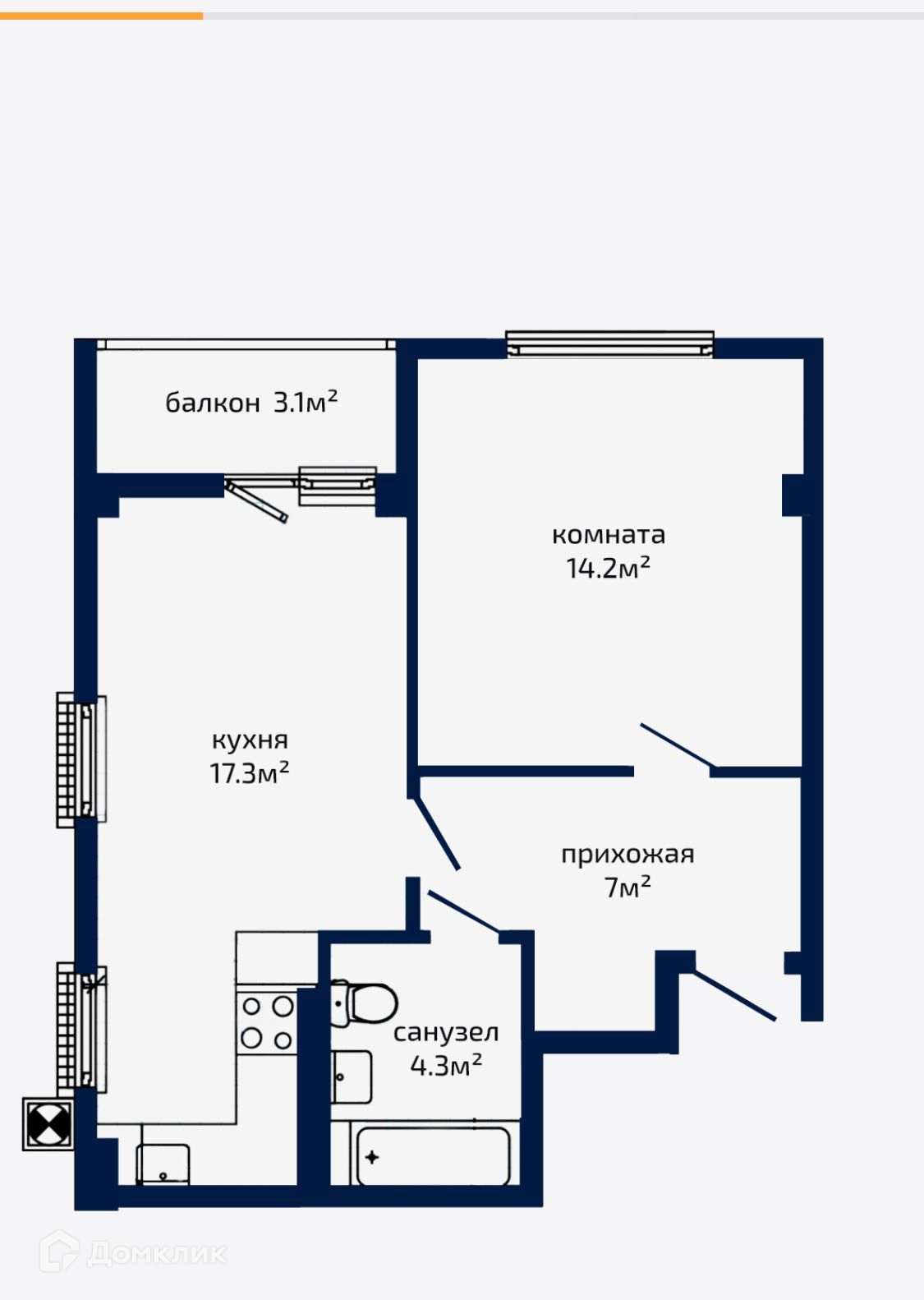 Общая площадь 43.2 м2