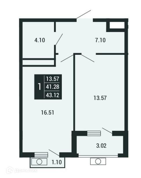 Общая площадь 43.12 м2