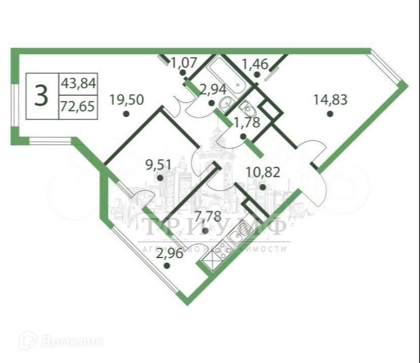 Жилая площадь 43 м2