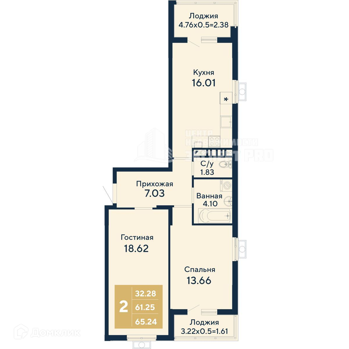 Общая площадь 65.24 м2