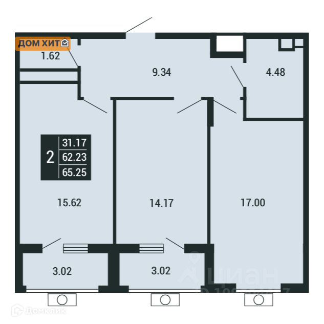 Общая площадь 65.25 м2