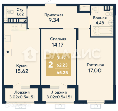 Общая площадь 65.25 м2