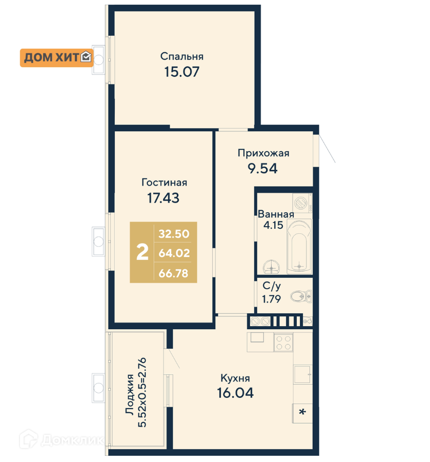 Общая площадь 66.78 м2