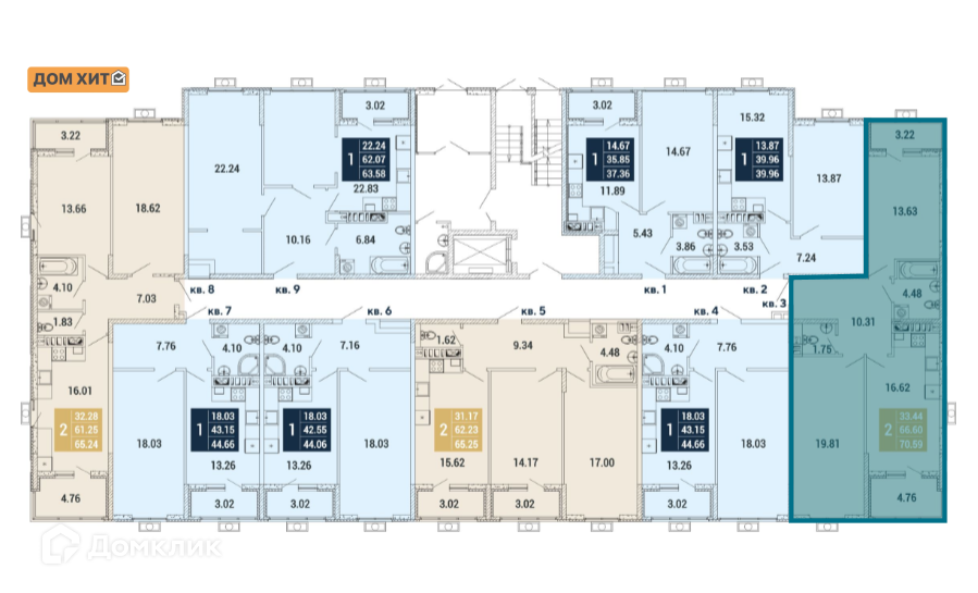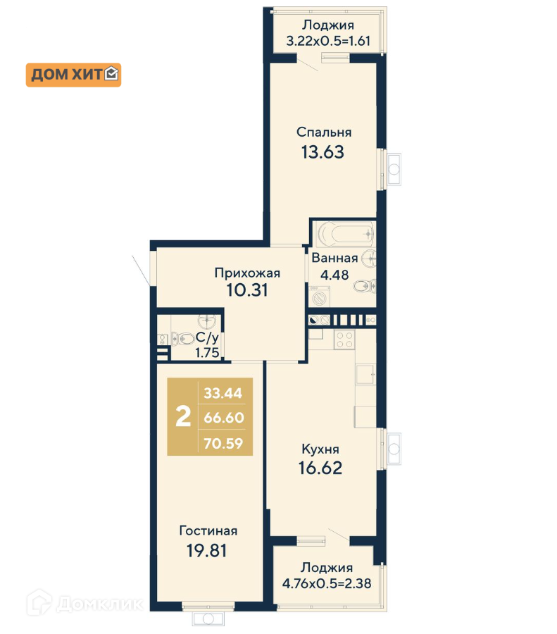 Общая площадь 70.59 м2