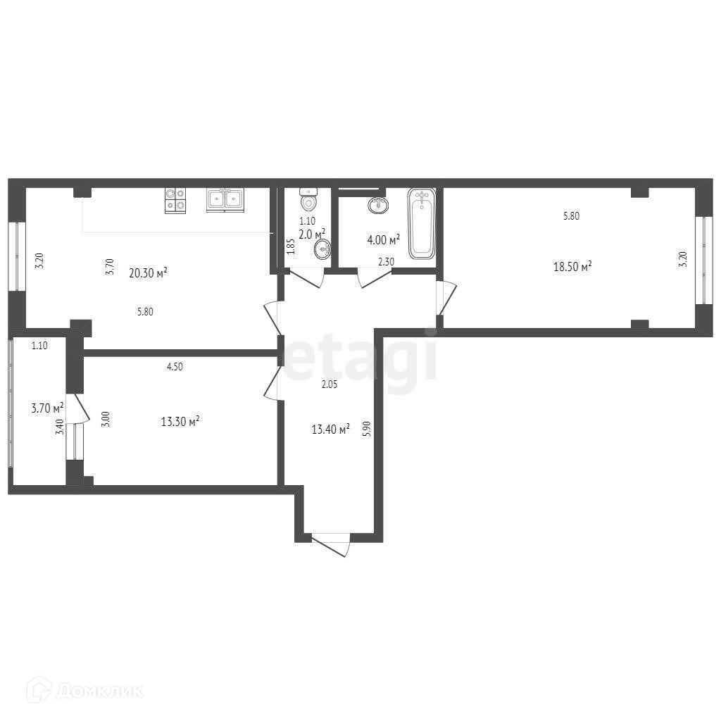 Общая площадь 73.1 м2