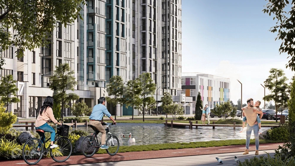 Более 20000 кв.м территории отдано под озеленение и благоустройство. Продуманная концепция озеленения поддерживает оригинальную архитектуру жилого комплекса; вместе с искусственным водоемом, пространствами для общения, отдыха и сетью прогулочных дорожек, в комплексе создается благоприятная экосистема.