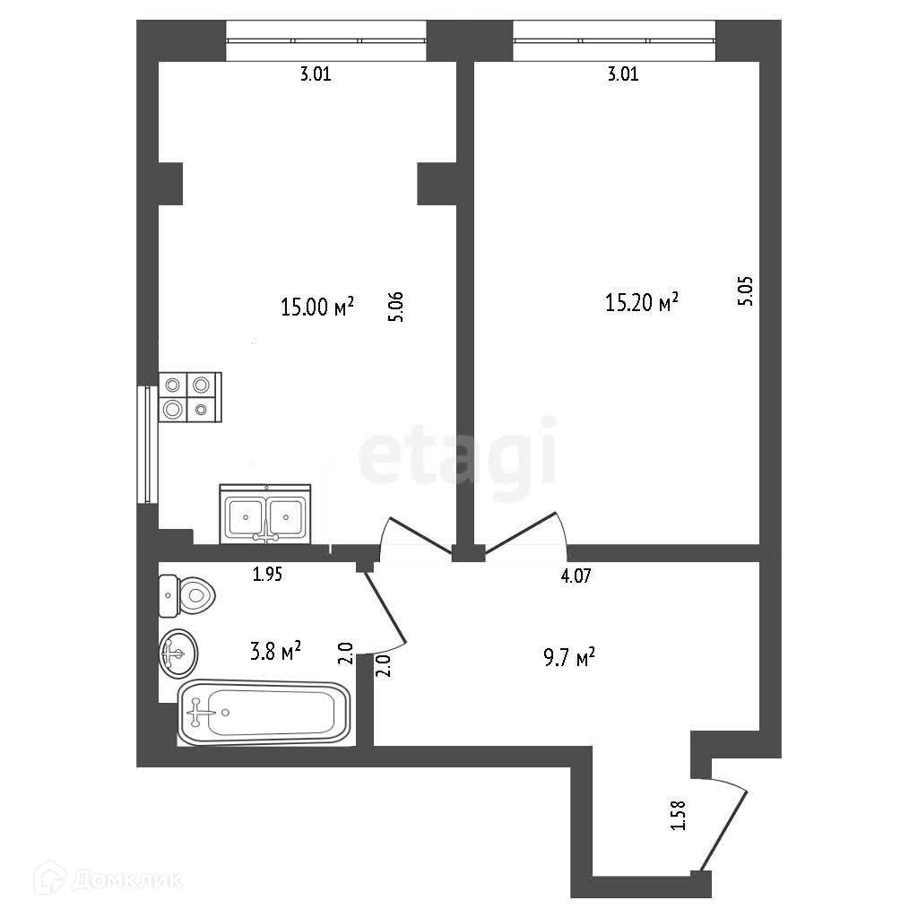 Площадь кухни 15.1 м2