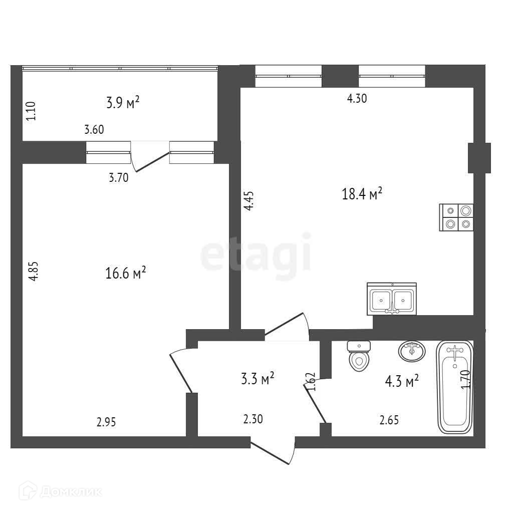 Общая площадь 43.5 м2