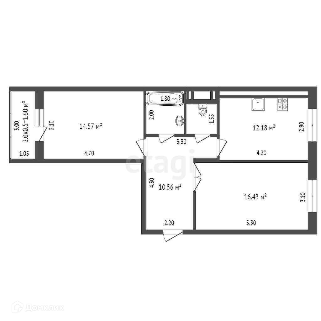 Общая площадь 60 м2