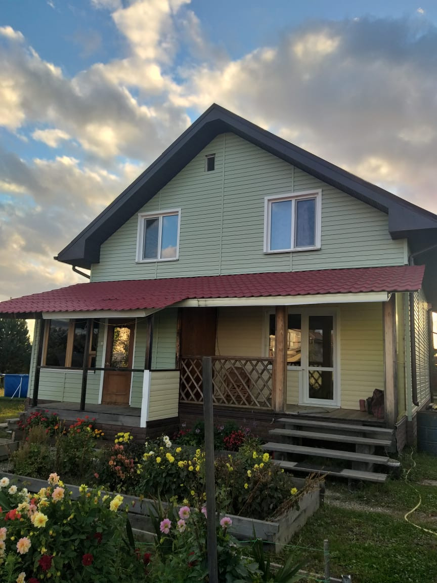 продается каркасный с мансардой двухэтажный коттедж 2018 года постройки. Толщина утеплителя  - 15 см. Фасад обшит сайдингом. Кровля - металлический профиль. Отделка стен -ГКЛ,фанера,панели МДФ. Потолки : 1-этаж   -натяжные. На втором этаже -окрашены.. Отопление электрическое. Скважина. Шамбо -10 м3. Кухня с мебелью,холодильником,духовкой,индукционной плитой.. Кондиционер.Мебель. На участке( 15 соток )посадки и две теплицы- поликарбонат. Хозпостройки.