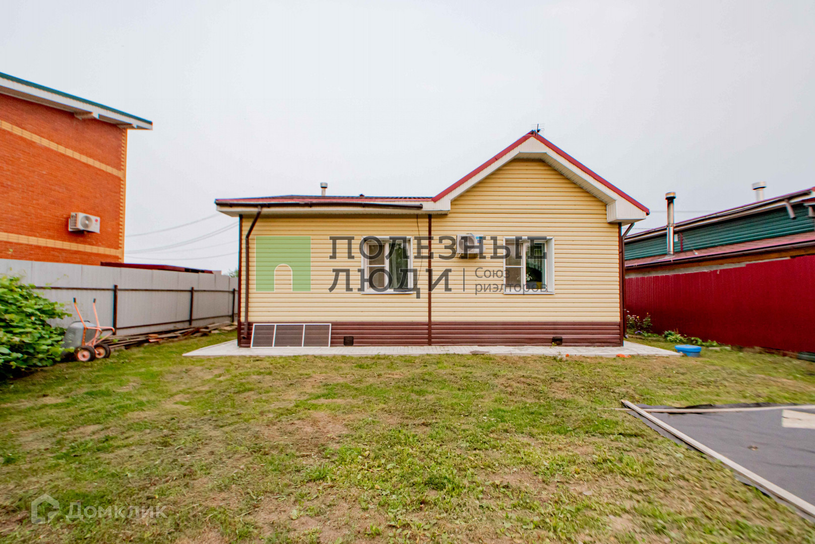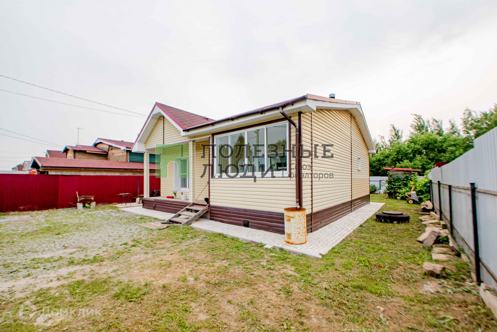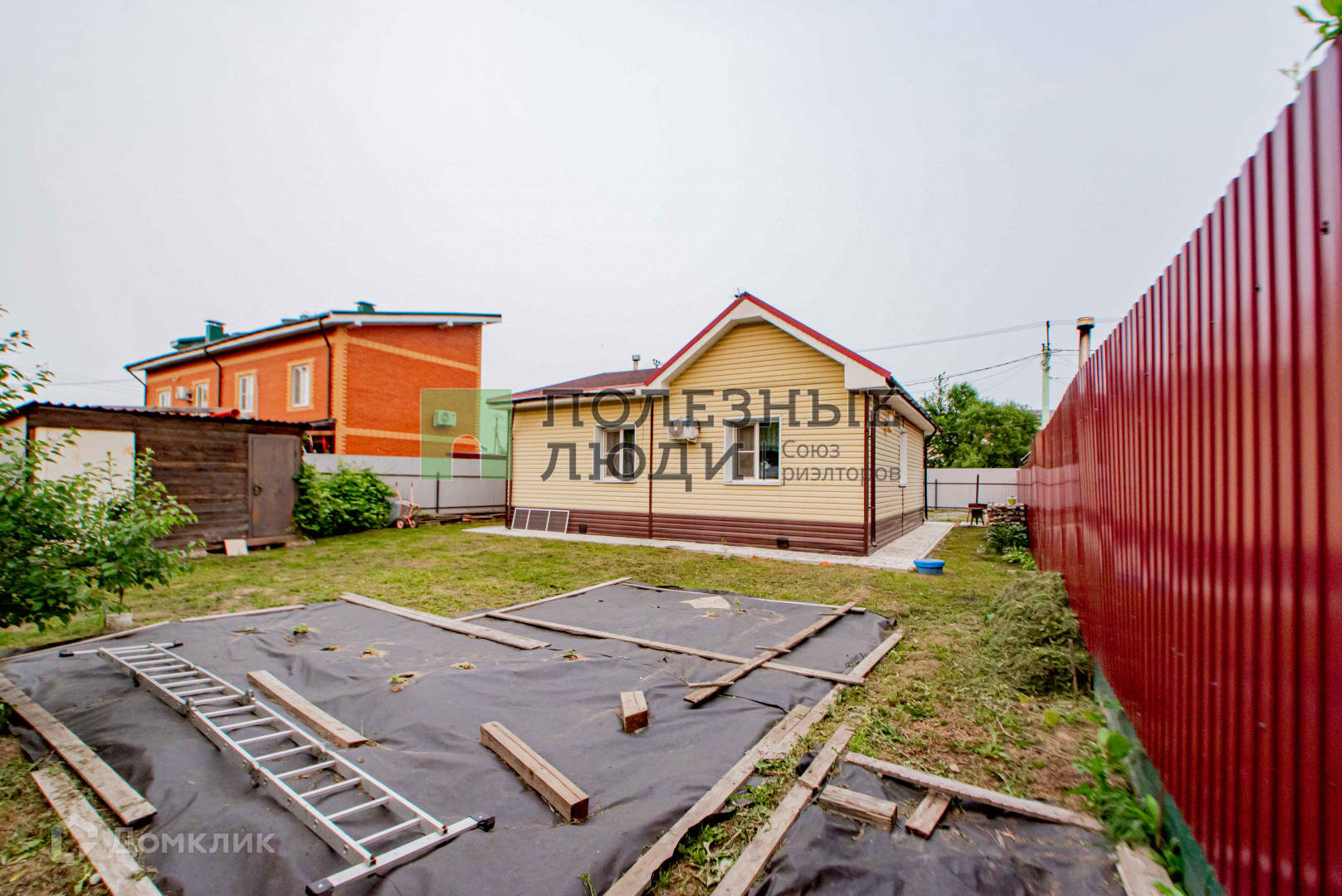 Ровный, ухоженный участок. Имеются плодовые насаждения крыжовник, малина, виноград, абрикос, яблоня, смородина.  Забор по всему периметру, достаточно высокий и грамотно установлен. На территории есть возможность ставить машину и не одну.