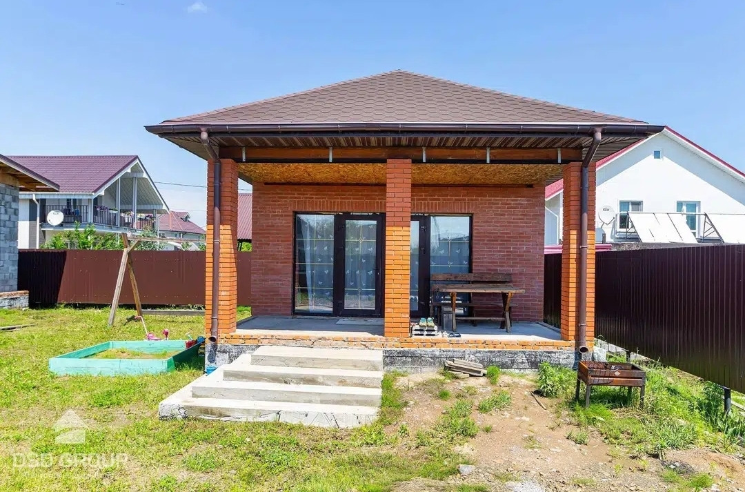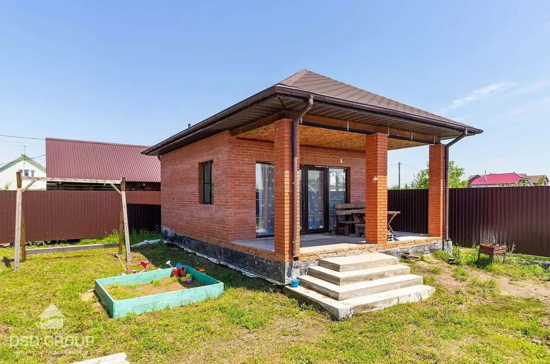 На территории расположен небольшой дом для временного проживания, или как место для отдыха. Построен из сип панелей, отделан кирпичом, стоит на ленточном фундаменте.