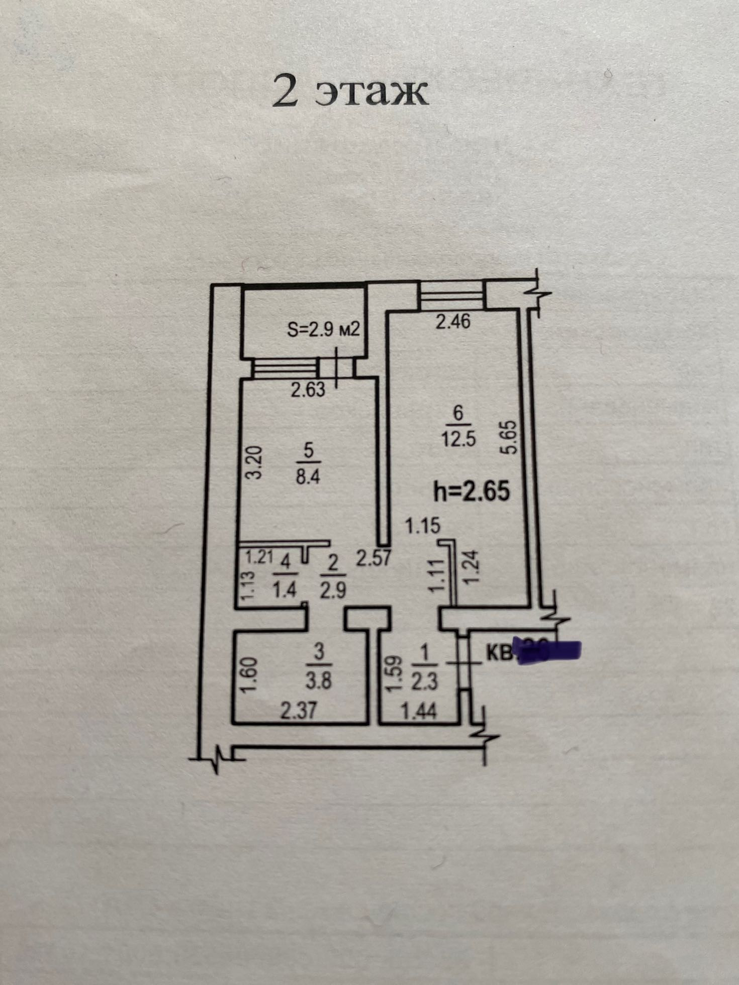 Высота потолков 2.65 м