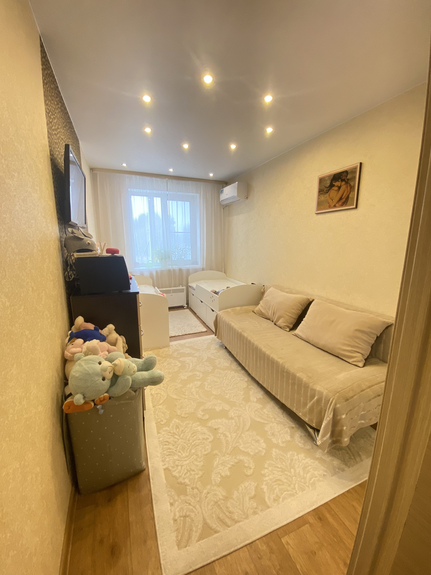 Самый выгодный во всех смыслах 2й этаж. 2 коридора, большая кухня 9 квадратов ОТДЕЛЬНЫМ не проходным помещением. Большая ванная комната полностью в кафеле. Отдельное подсобное помещение с бойлером. По всей квартире натяжные потолки. Уставлен кондиционер. Основная комната 12,5м2 с встроенной гардеробной в 1,5 квадрата. Лоджия 3м2 с проведенным светом и обшита панелями. Высокие потолки 2,65. Установлены счетчики на воду и свет. Долгов НЕТ. Квартира не нуждается в ремонте и вложениях. В подъезде домофон. Большой чистый подъезд без проблемных соседей. Дам контакт старшего по дому. Проведен интернет и тв.