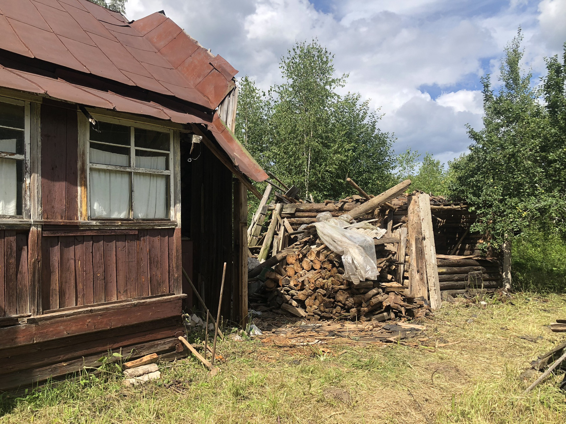 Дом и земельный участок поставлены на кадастровый учёт. Много дров. Фундамент под баню.