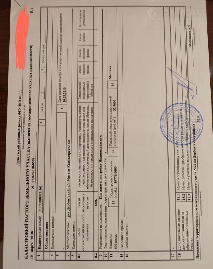 Площадь участка 6 сот.