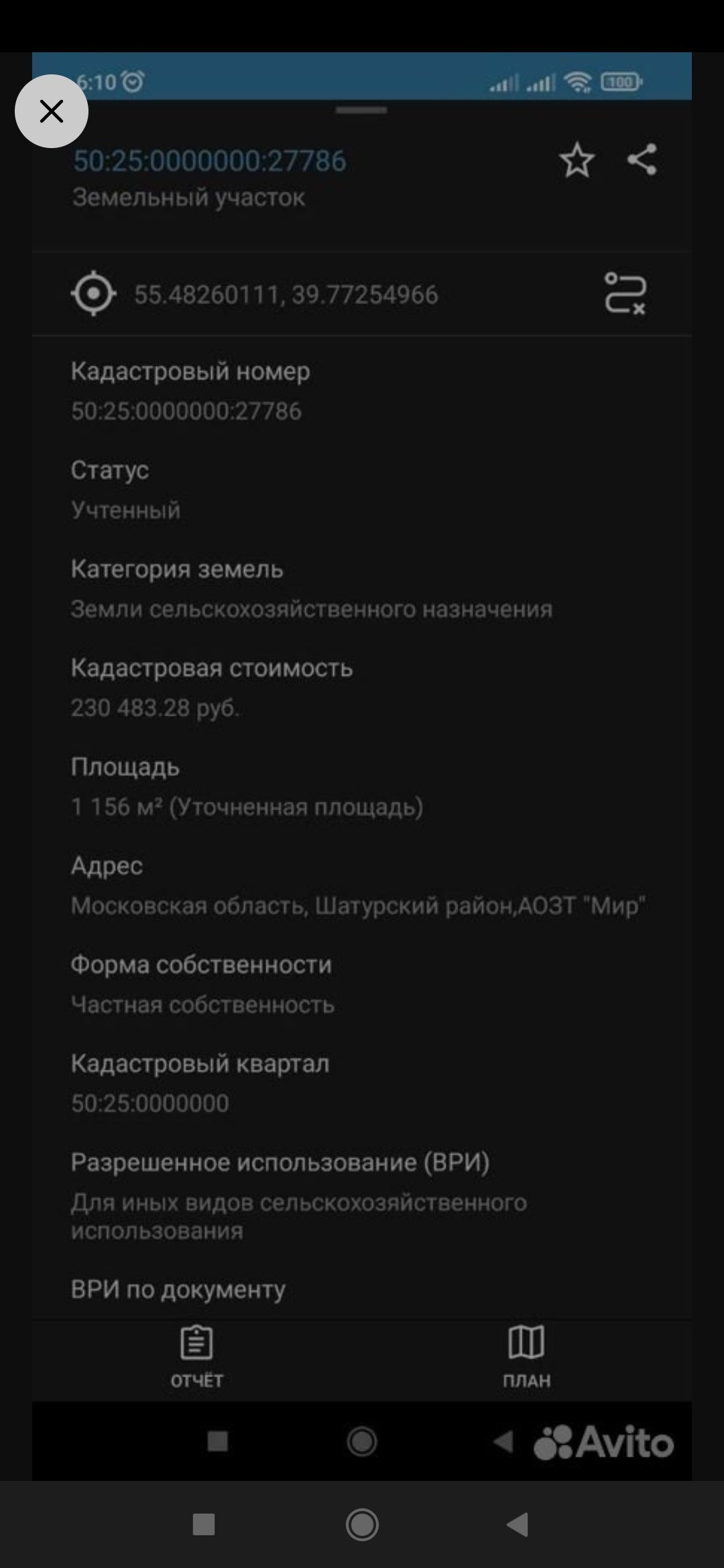 Продаётся земельный участок с кад.номером вид дачное строительство, категория земли сельскохозяйственного назначения.
