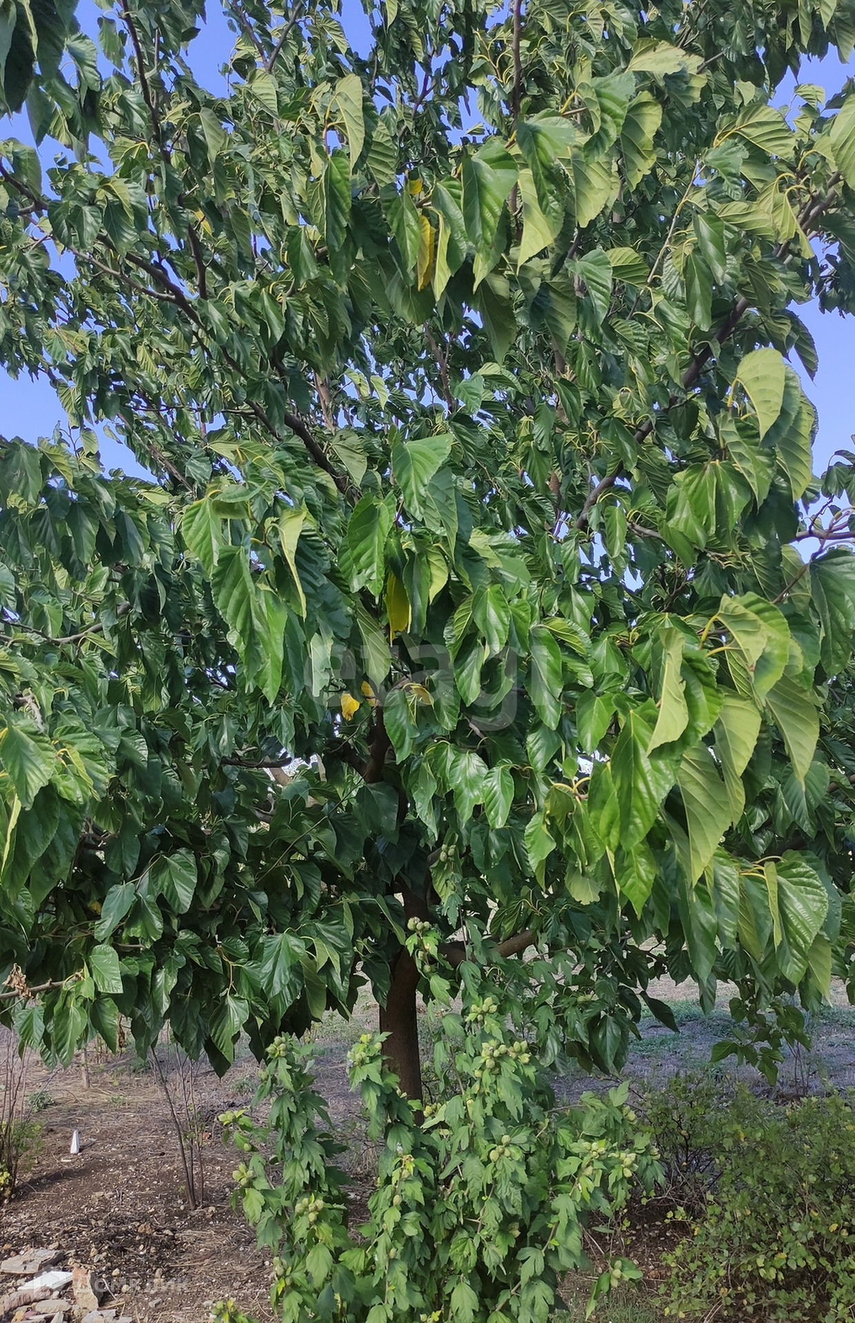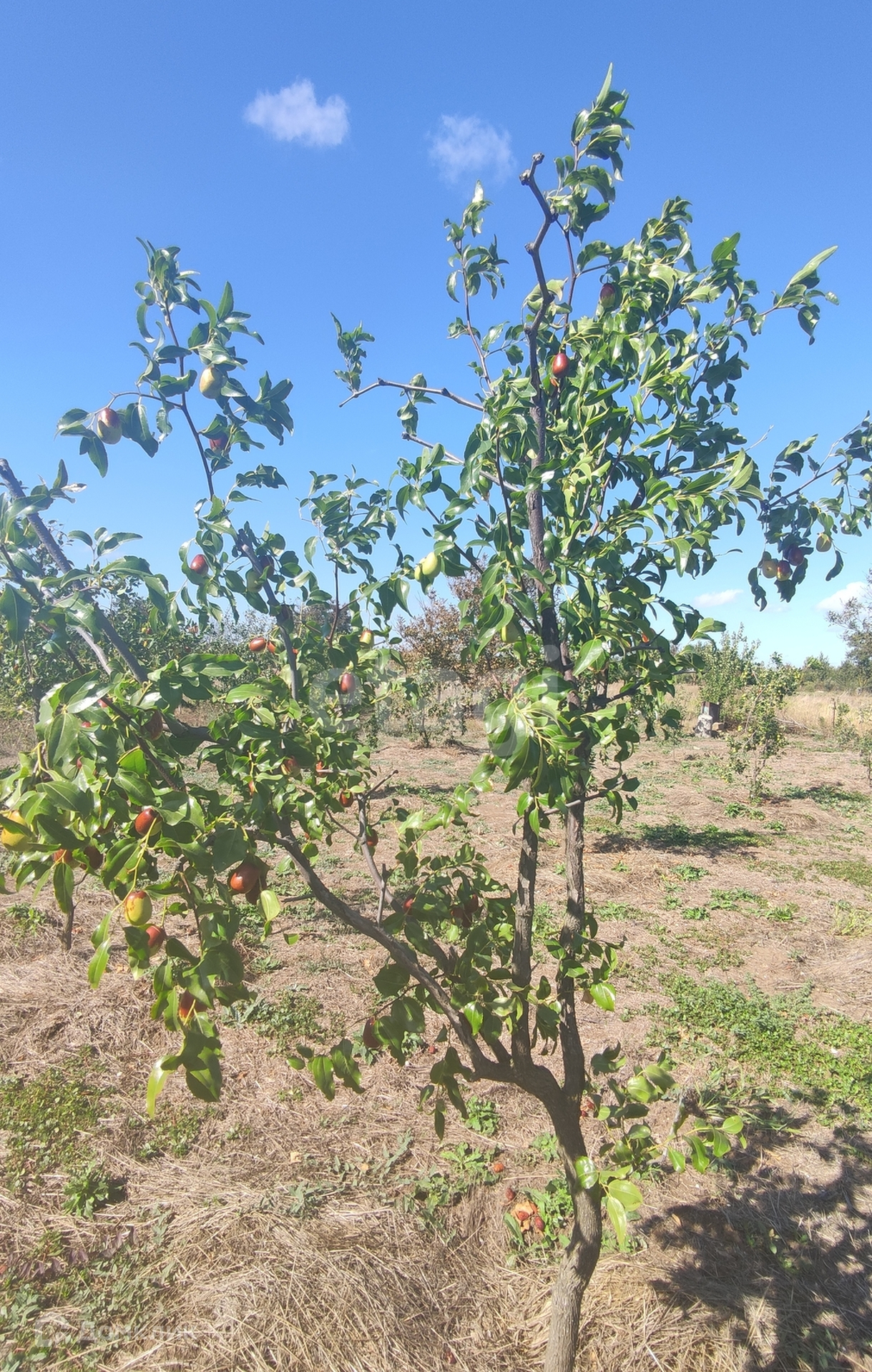 Участок ровный, правильной формы,на нем растут деревья:яблоки,зизифус (несколько видов),кизил горный и садовый.