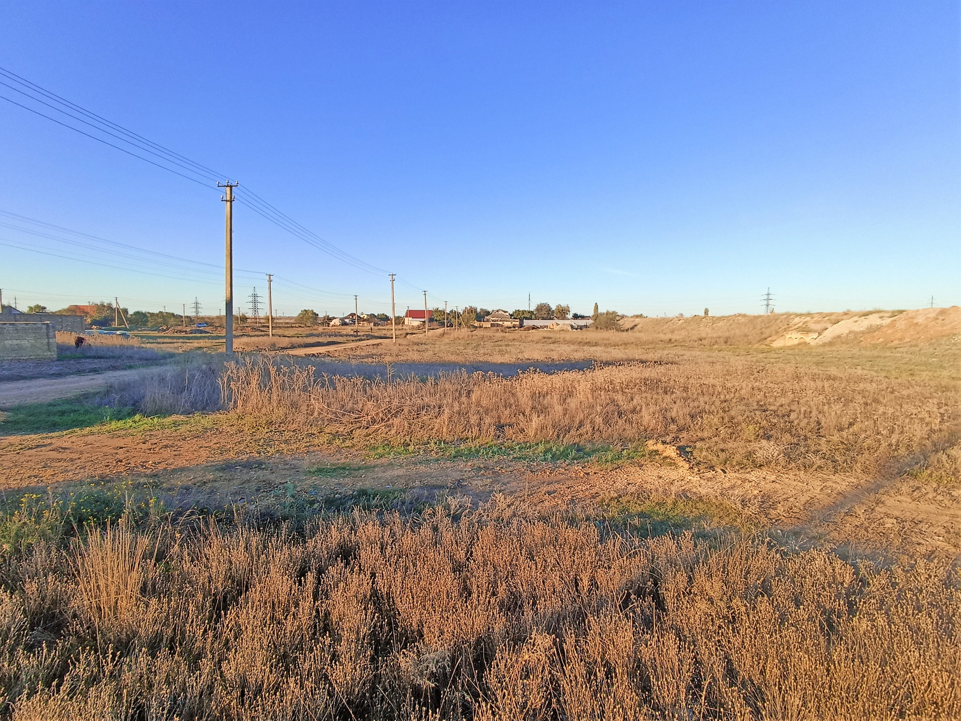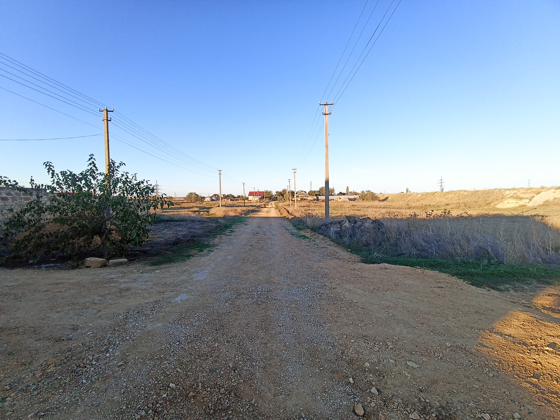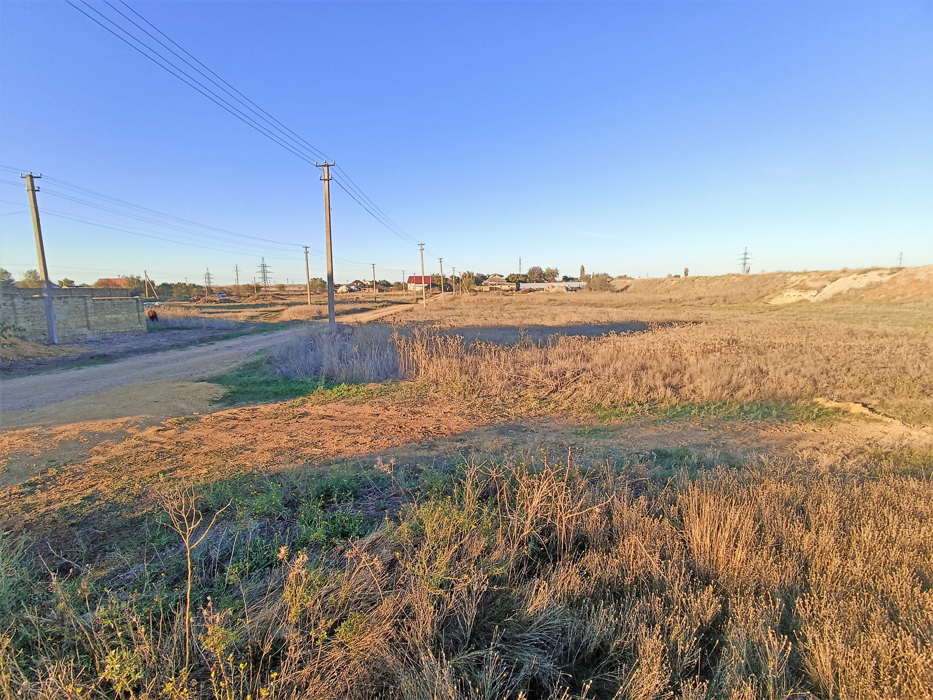 Район спокойный, полностью обжитый, активно застраивается. Дорога выровнена и отсыпана камнем (тырсой). Напротив живут люди.