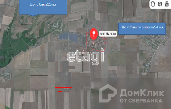 До асфальтированной дороги около километра, до города Саки 17 км, до моря 20 км.