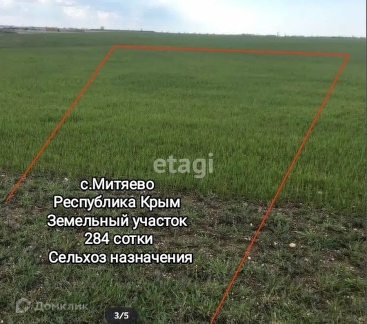 Продаю земельный участок сельхоз назначения 284 сотки в Митяево Сакского района Республики Крым.