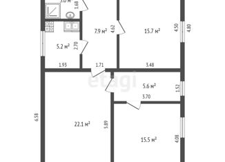 Общая площадь: 55.4 м2