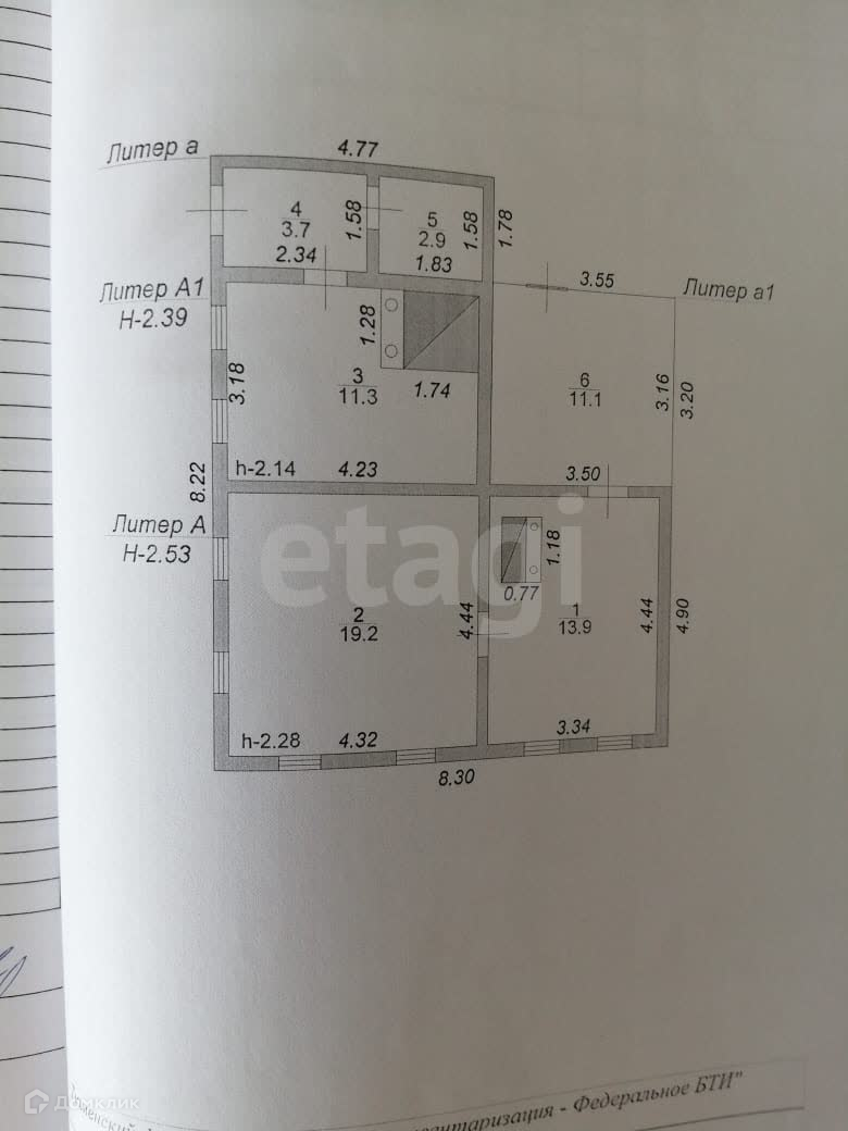 Общая площадь 49.3 м2