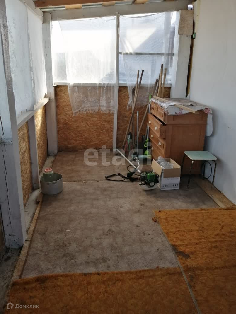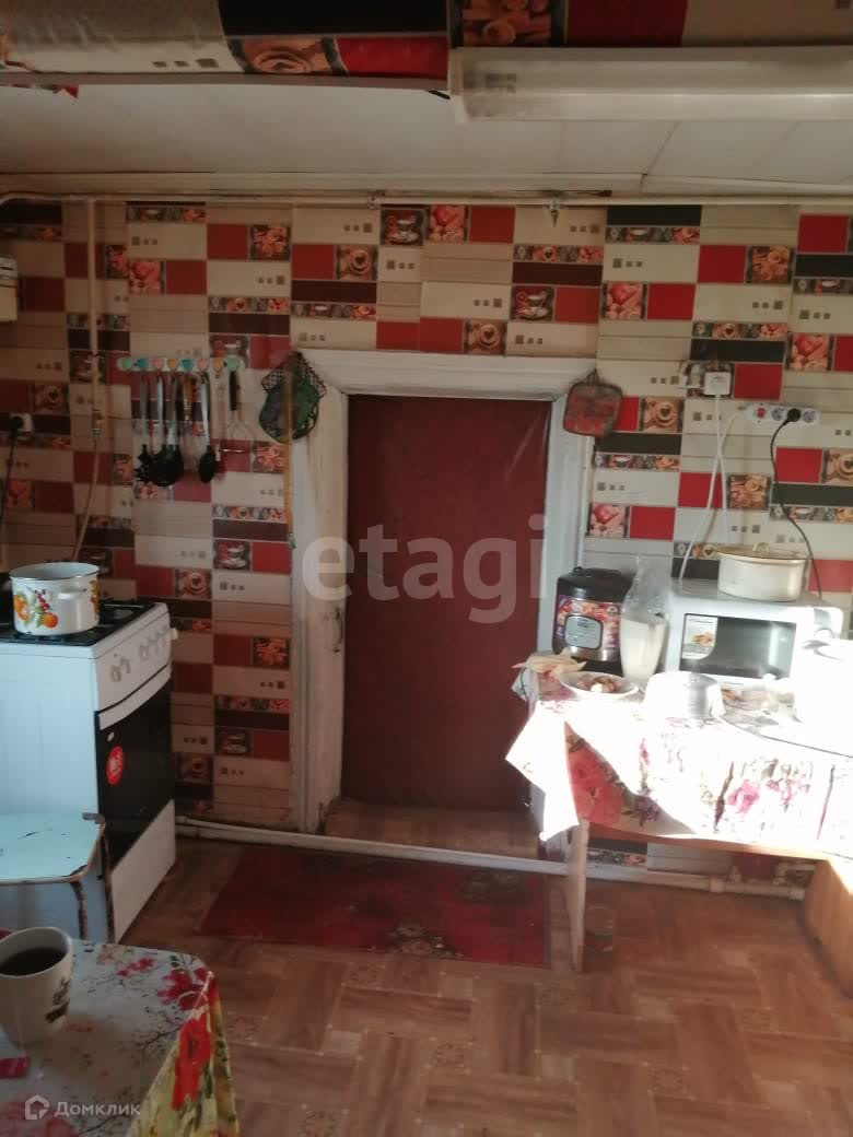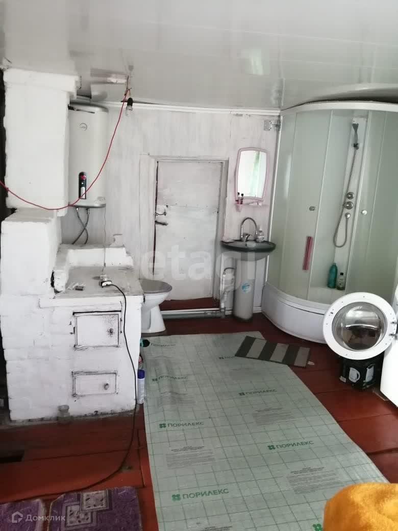 Внутри дома есть 2 комнаты и кухня, а также душевая. Дом оборудован газовым отоплением, имеет воду и канализацию, а также прошел косметический ремонт. Изготовлен из бруса, поэтому является очень тёплым и уютным. Есть крыша из шифера и сайдинга, а окна выполнены из пластика. На участке также имеются дополнительные постройки.