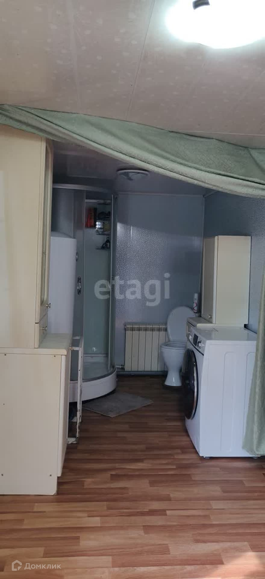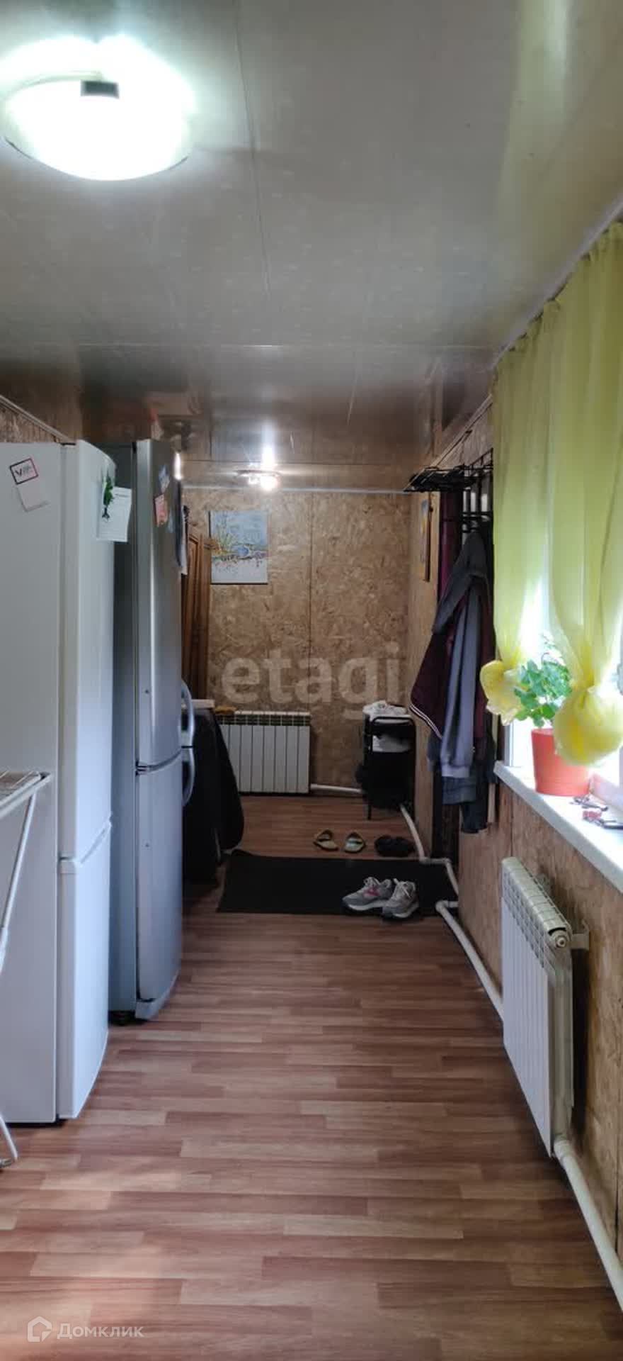 В доме 2 комнаты, просторная кухня гостиная 35 кв.м. и коридор, в котором установлена душевая кабинка и унитаз. Общая площадь дома 90 кв.м.