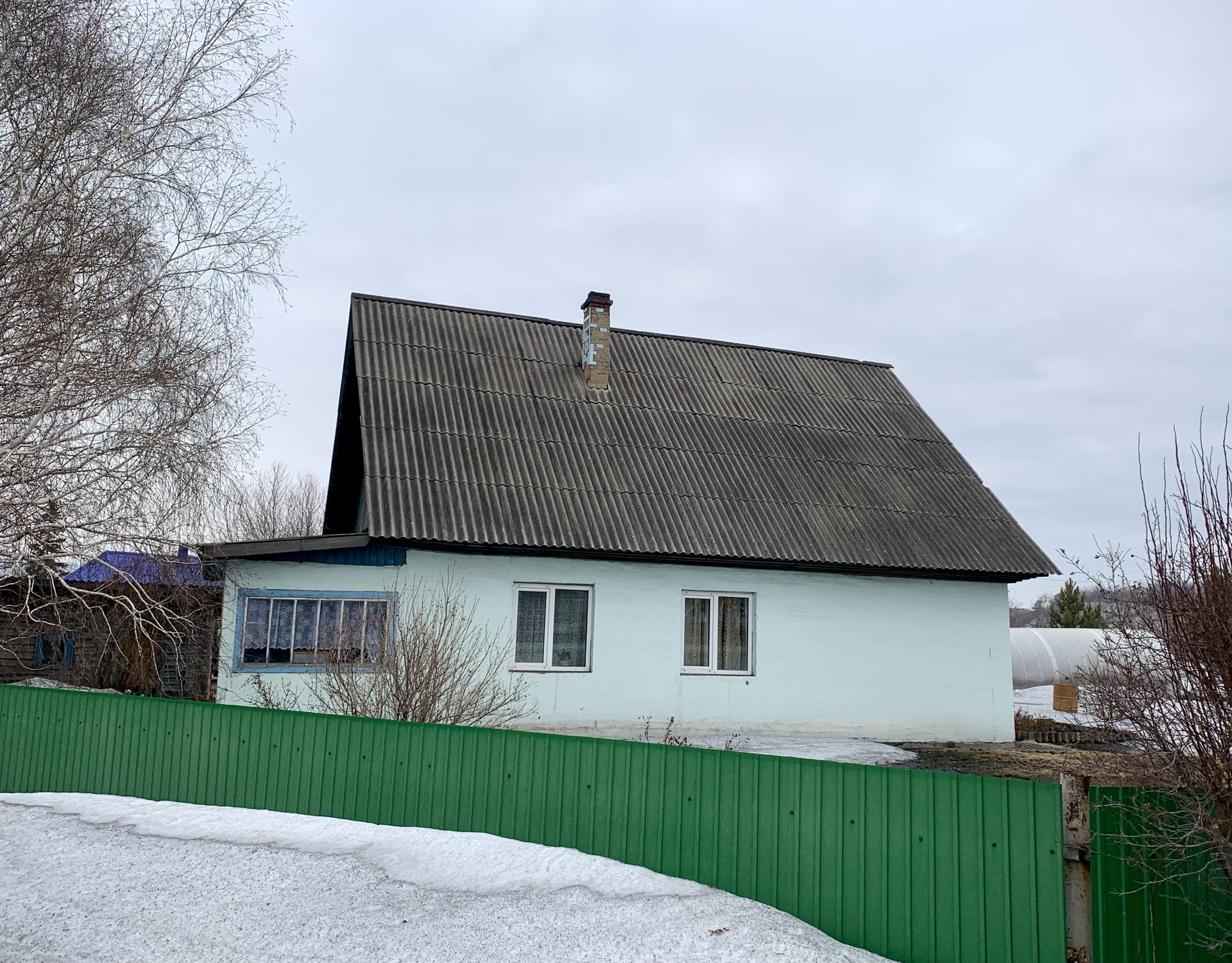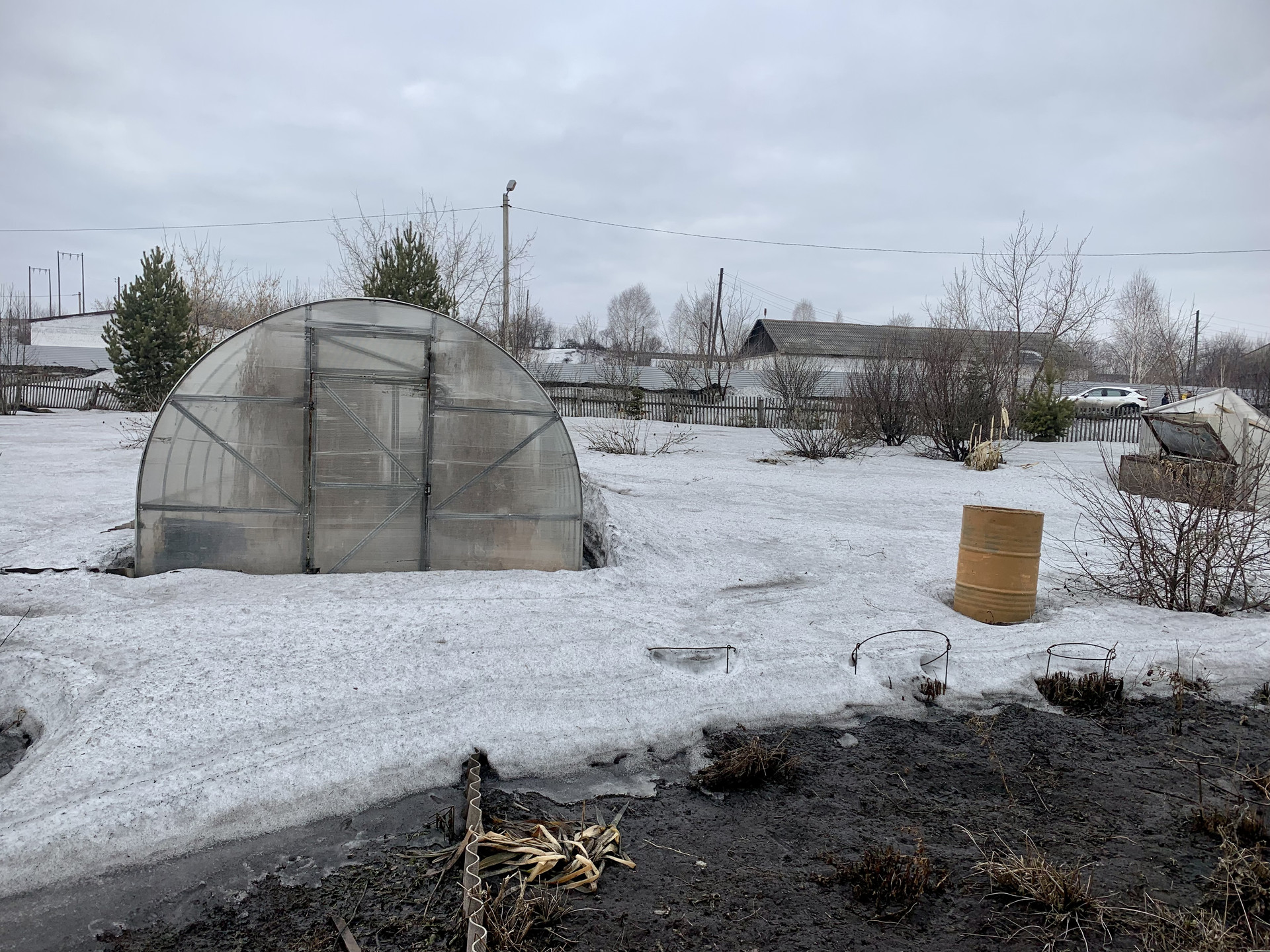 В огороде имеется большая теплица, а также различные плодово-ягодные деревья.