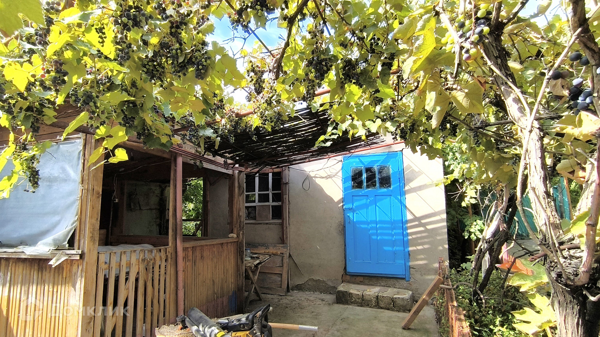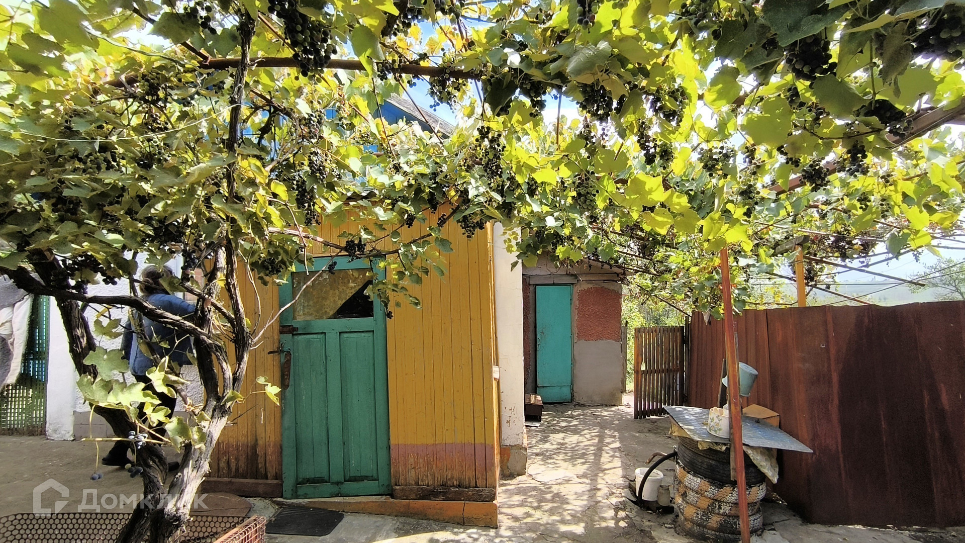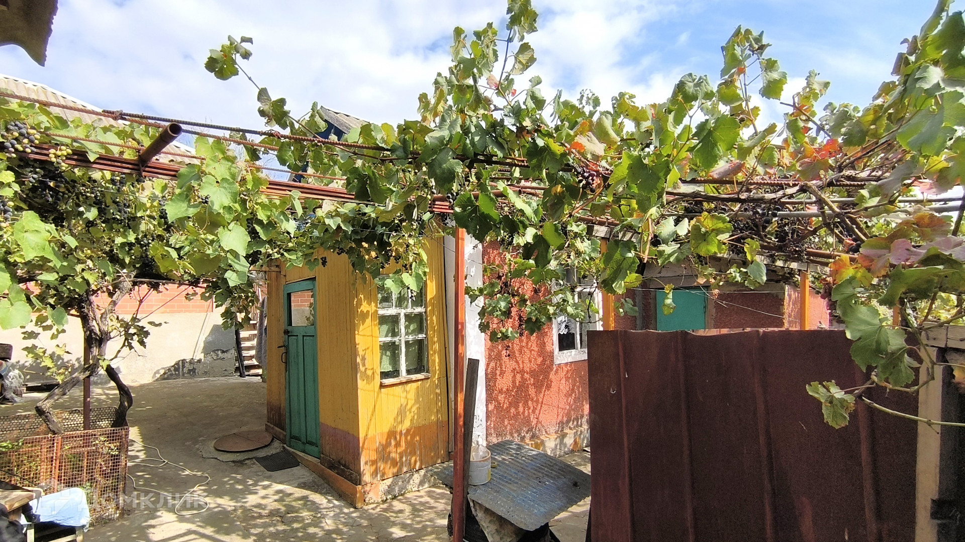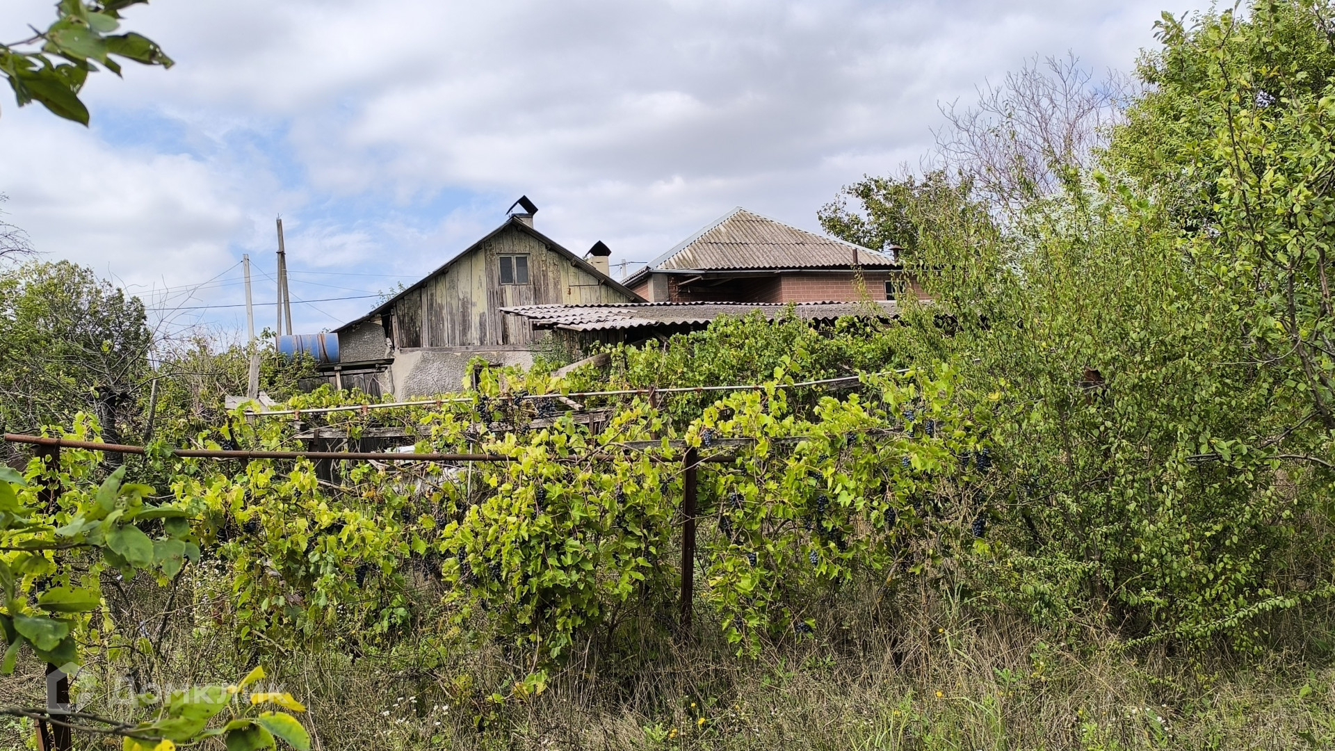 На участке находится сад с плодовыми деревьями и виноградник.