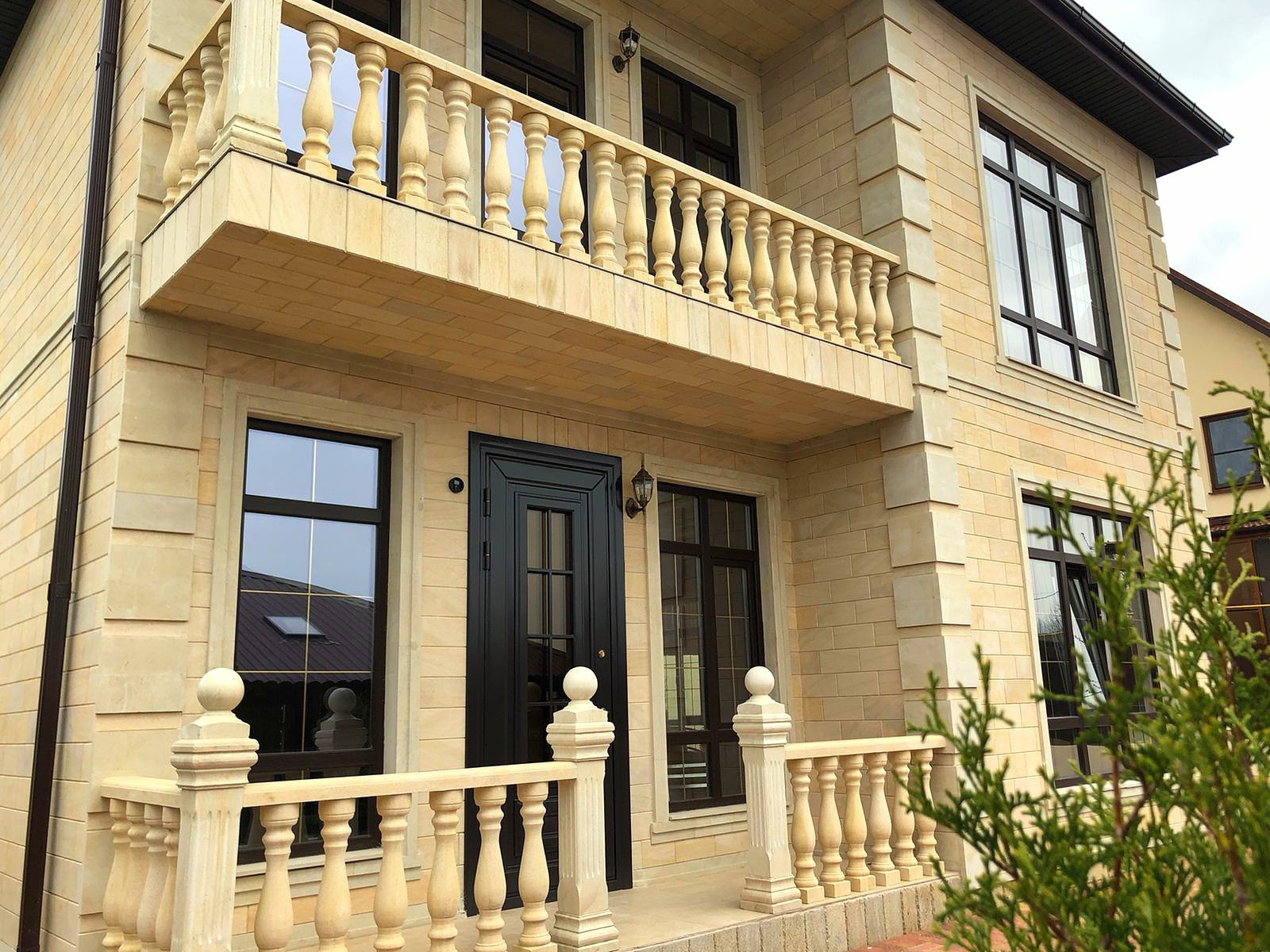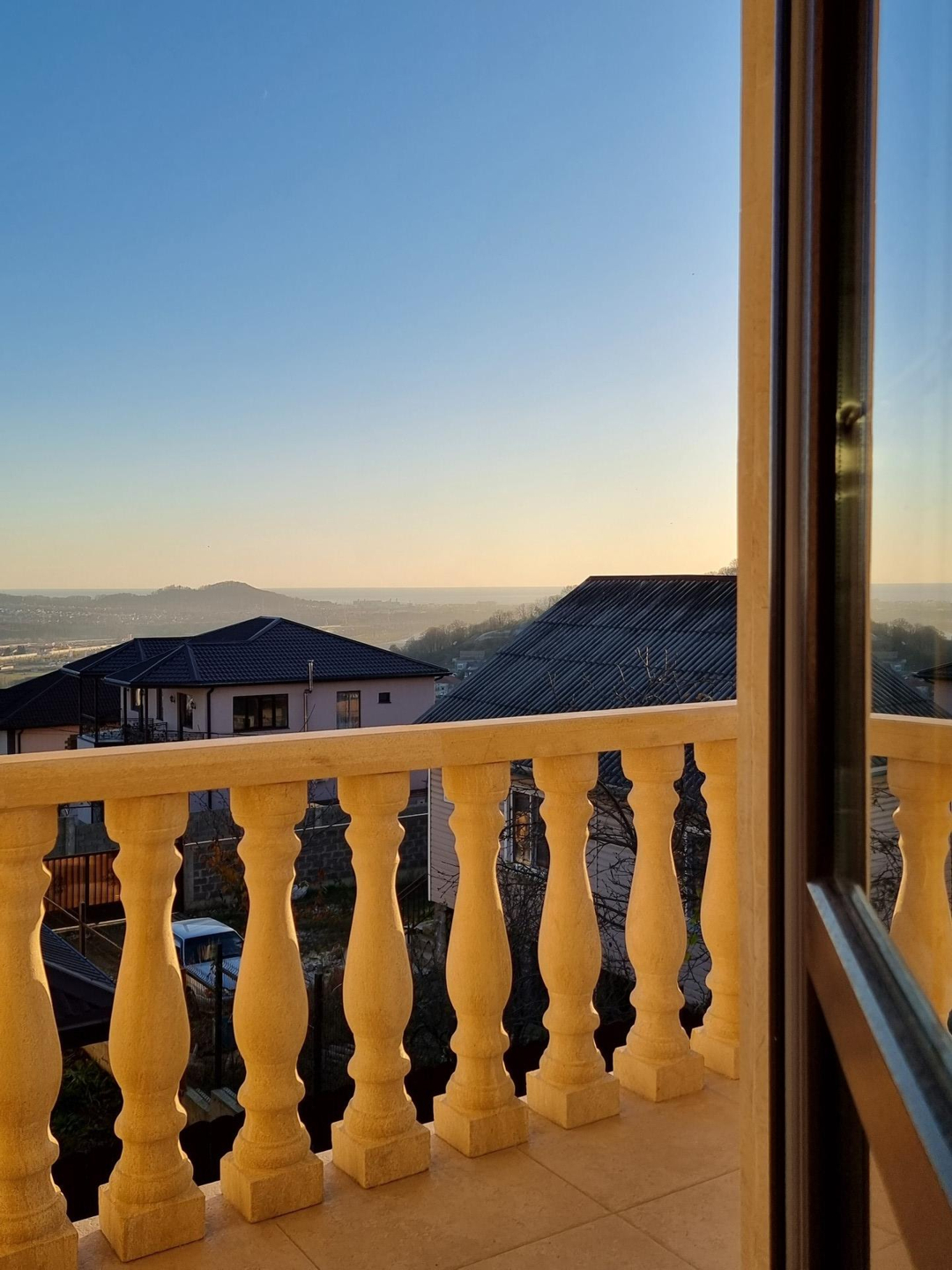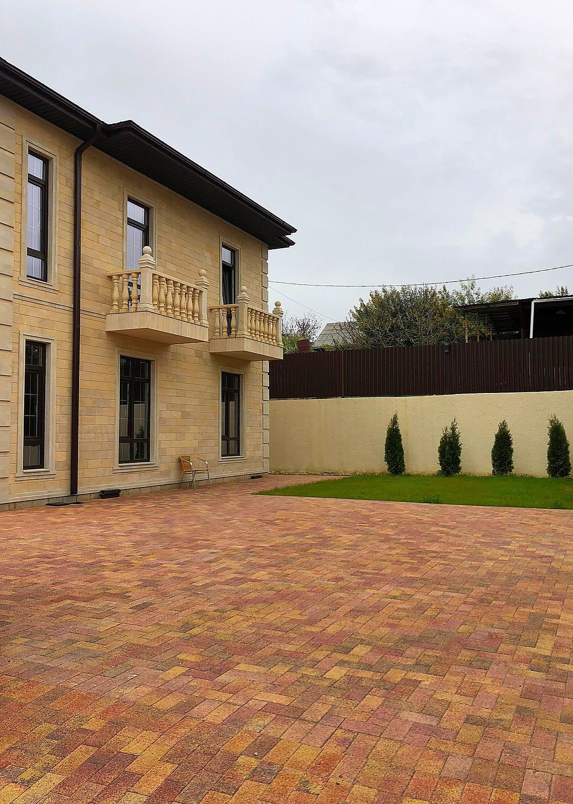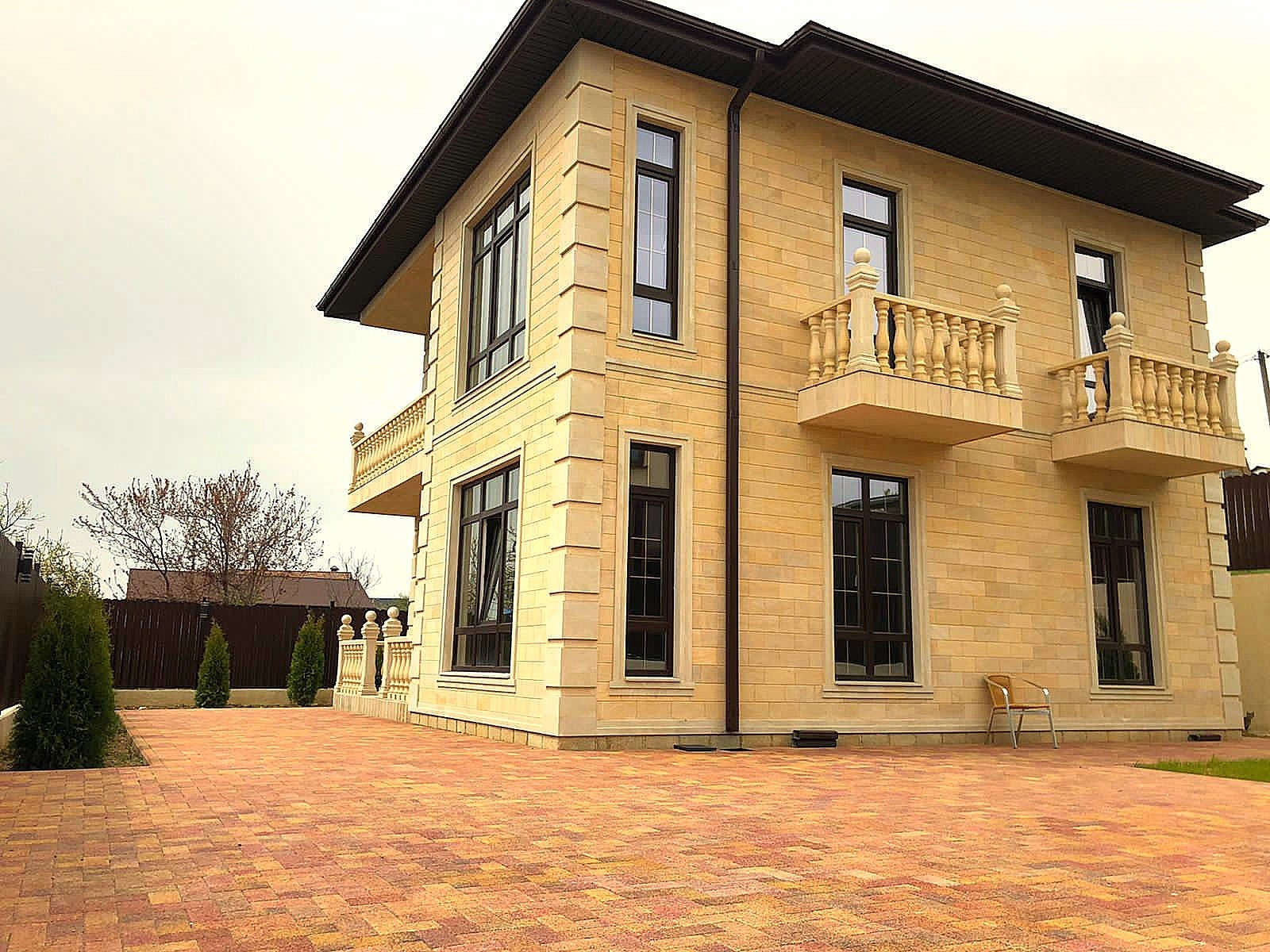 Площадью  160 м², два этажа в черновой отделке,фасад дома облицован "дагестанским камнем", из окон и с балкона открывается  прекрасный вид на горы и море