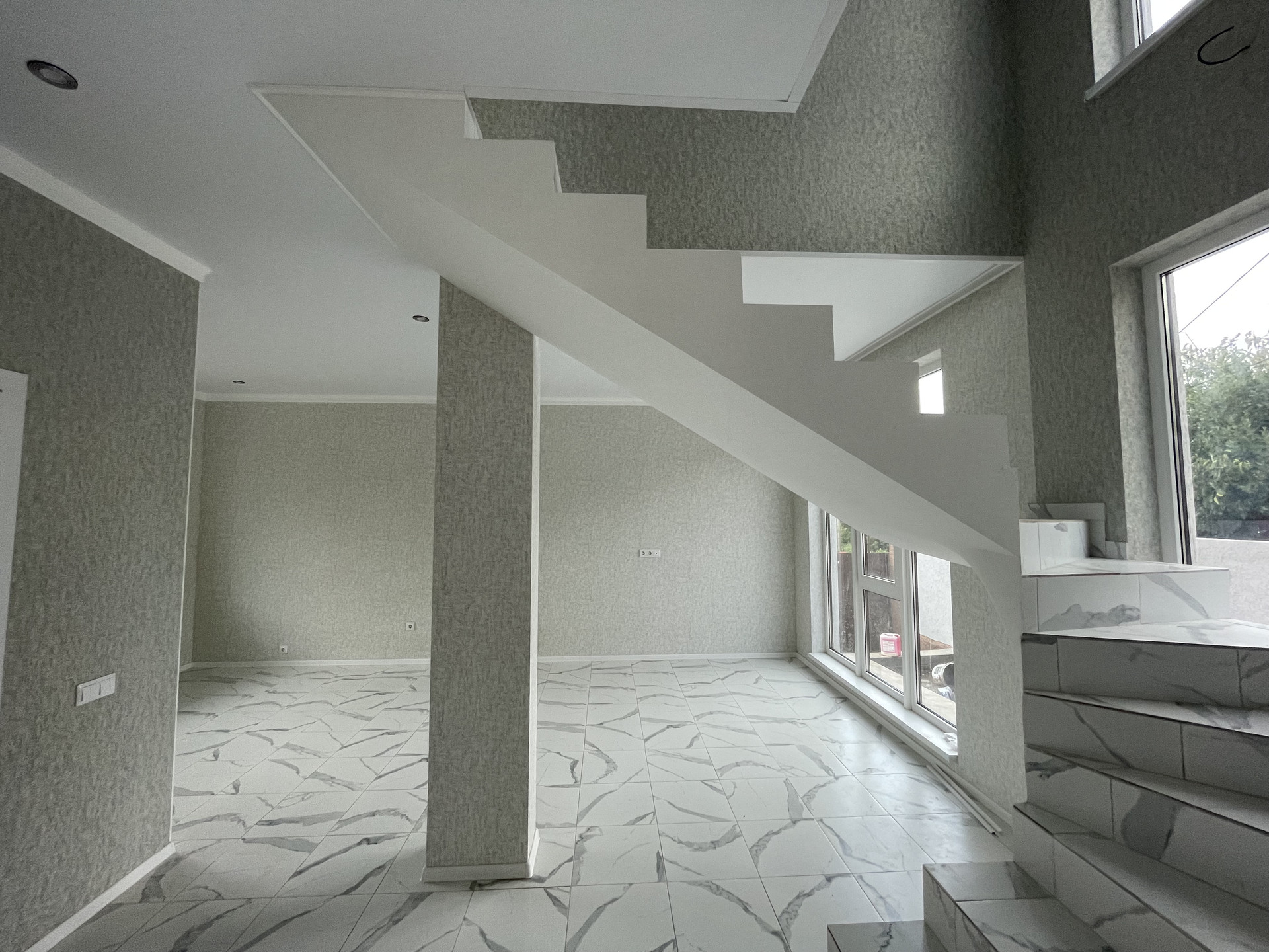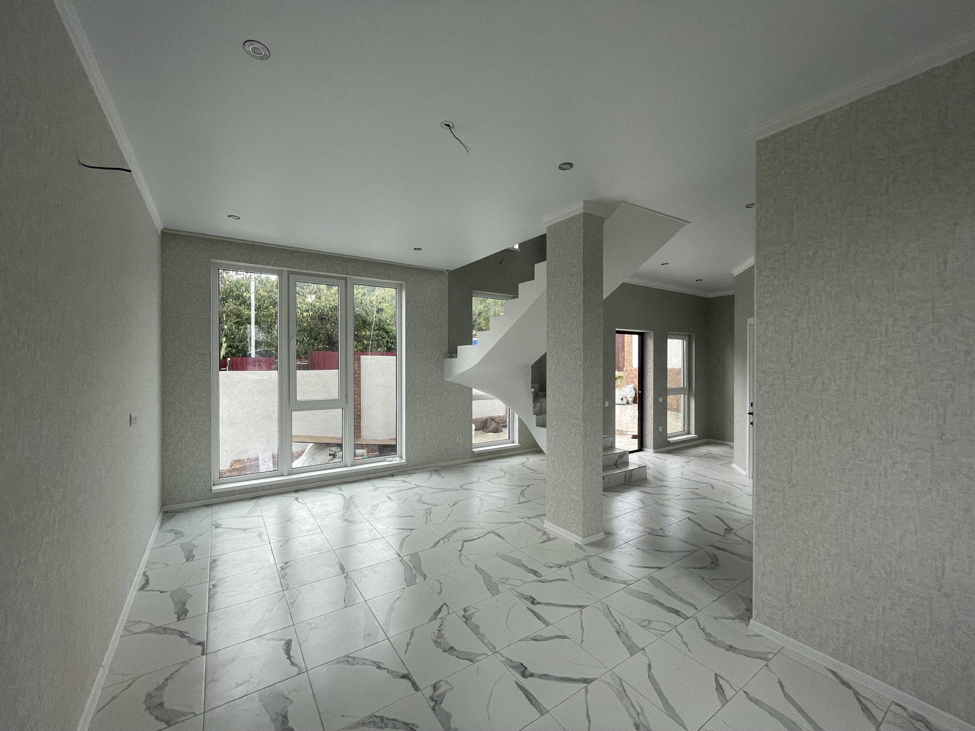 По всему дому теплые полы. Витражное остекление, так же есть балкон.