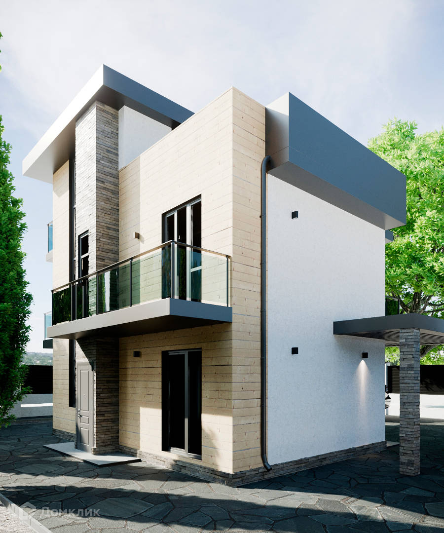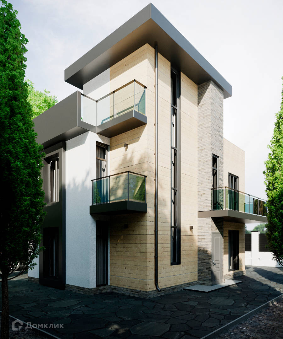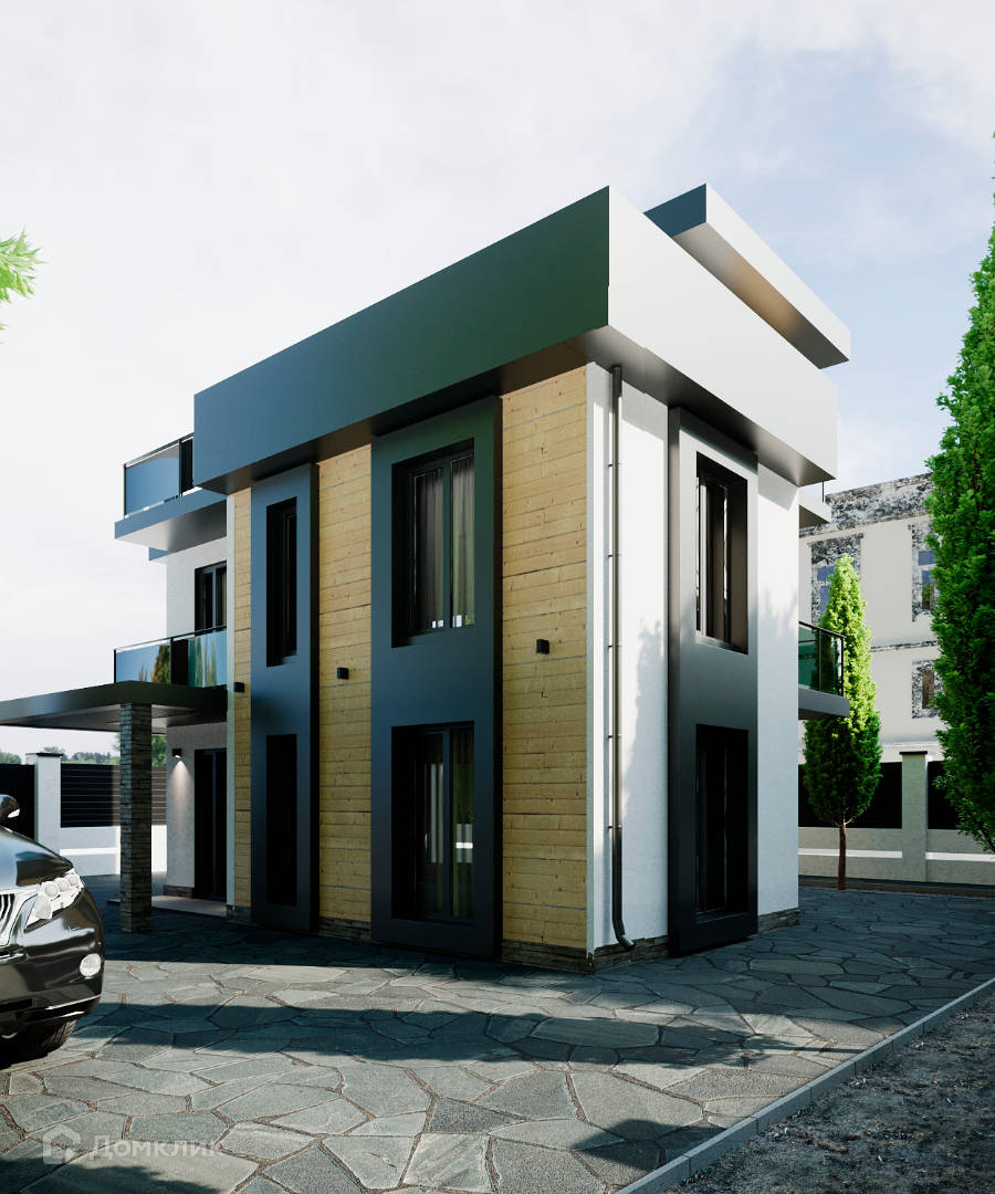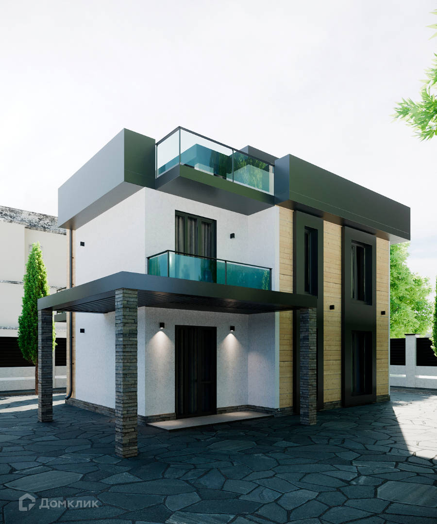 Крыша является эксплуатируемой, что позволяет использовать ее как дополнительную зону отдыха с прекрасным видом на окружающий пейзаж. Ограждение территории выполнено из стекла триплекса, блока и ламелей, обеспечивая безопасность и приватность.