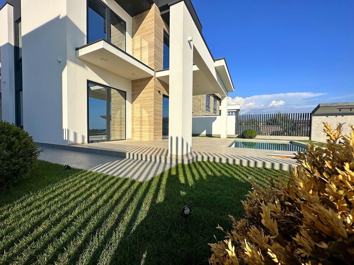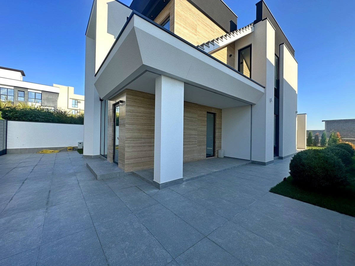 Все работы велись профессиональной строительной компанией с соблюдением всех норм строительства и геодезии. Отделка фасада комбинированная – декоративная штукатурка, элементы и керамогранит. Ограждение балконов и эксплуатируемой кровли – стекло триплекс. Благодаря панорамному алюминиевому остеклению дом наполнен большим количеством естественного света.