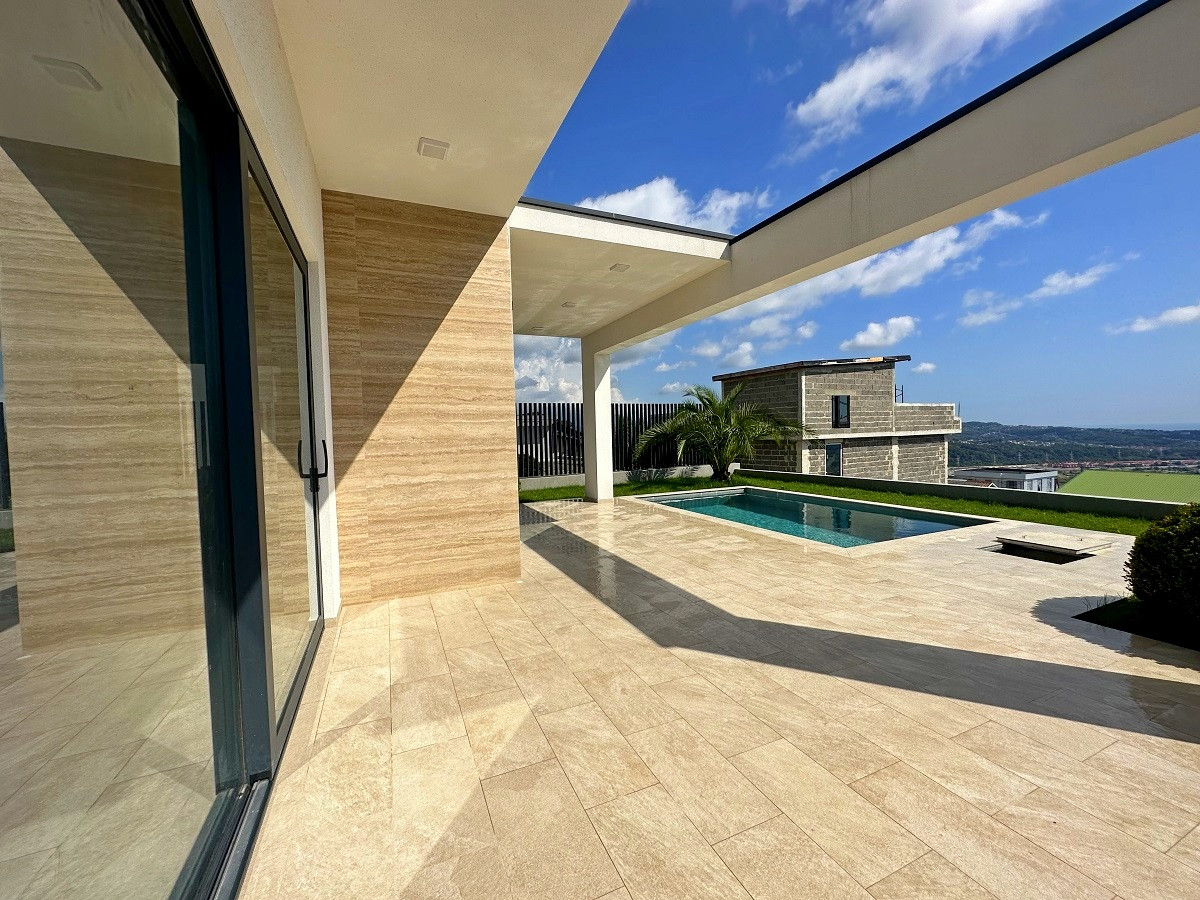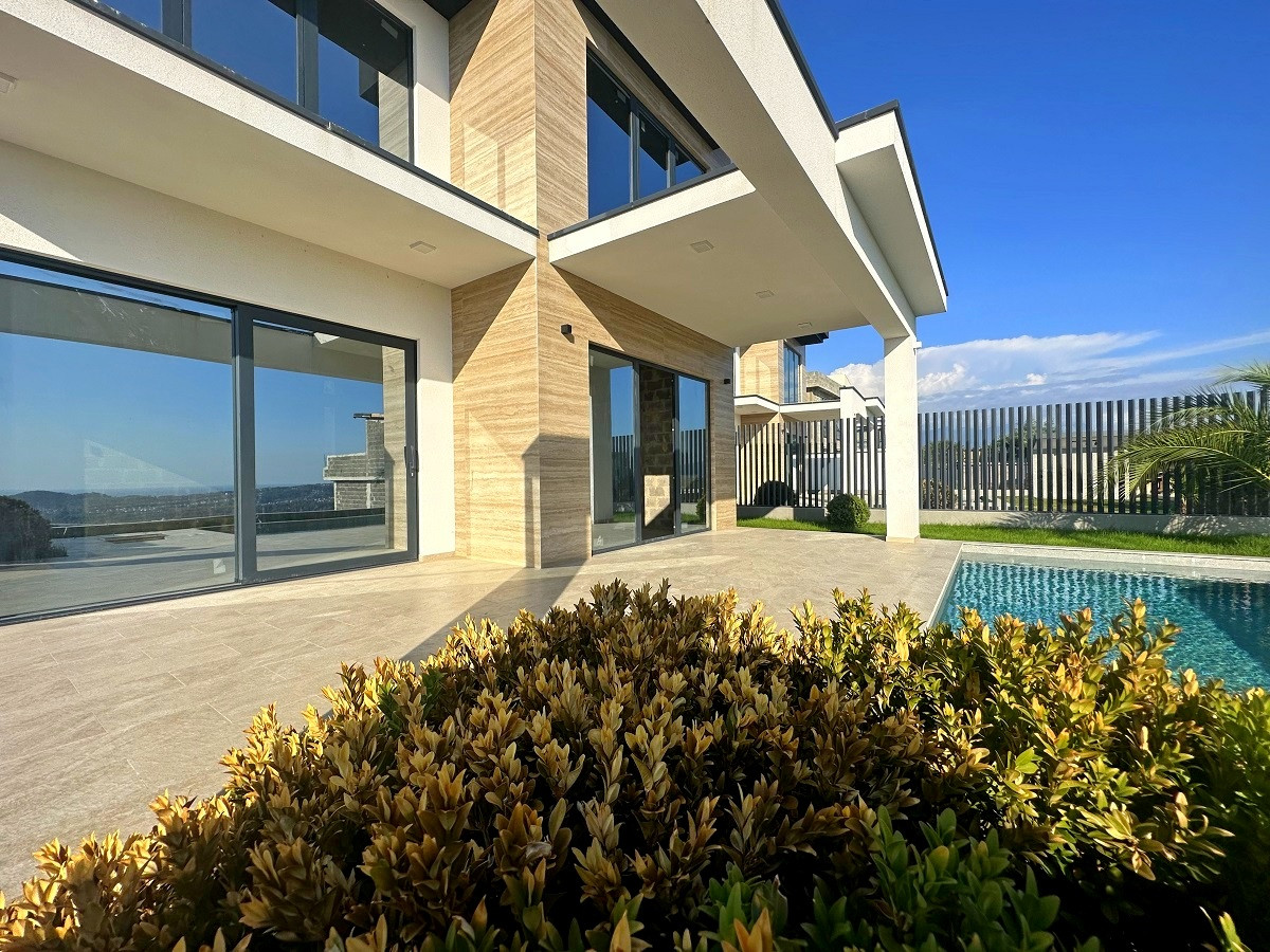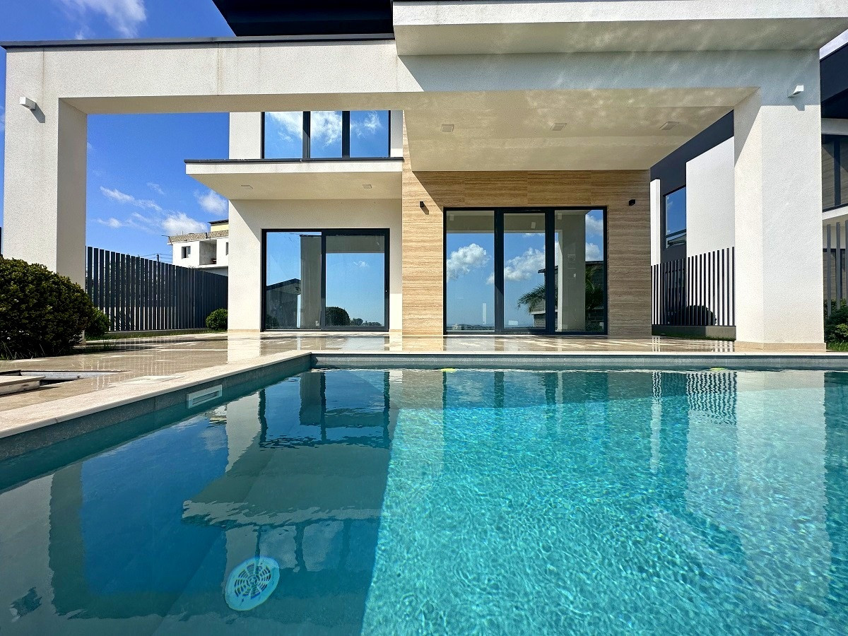 Планировка функциональная, на первом этаже расположилась просторная кухня-гостиная с выходом к бассейну, спальня, санузел; на втором этаже – мастер-спальня с санузлом, спальня с выходом на террасу, детская или кабинет, санузел. Из всех окон открывается панорамный потрясающий вид на морской горизонт.