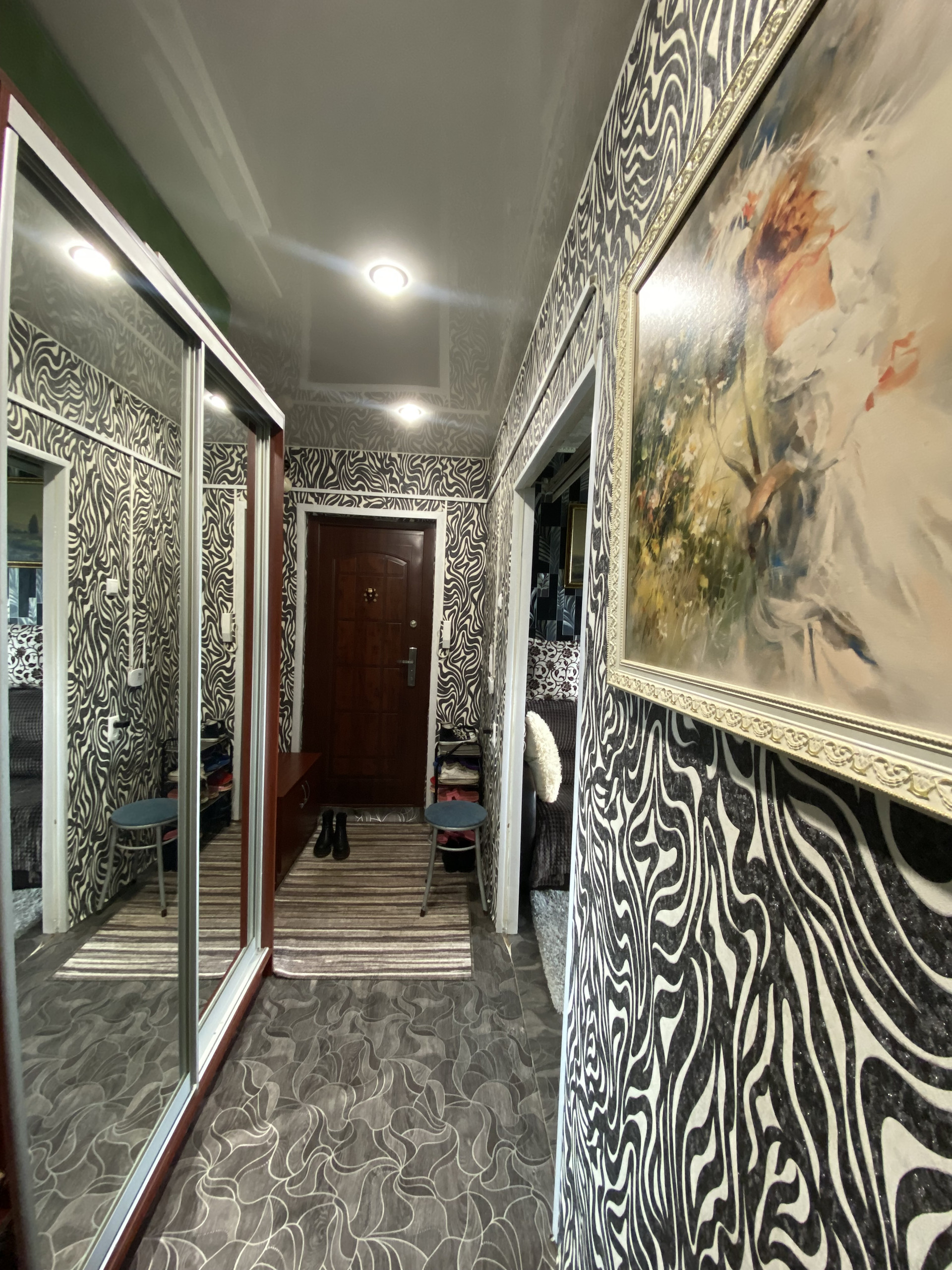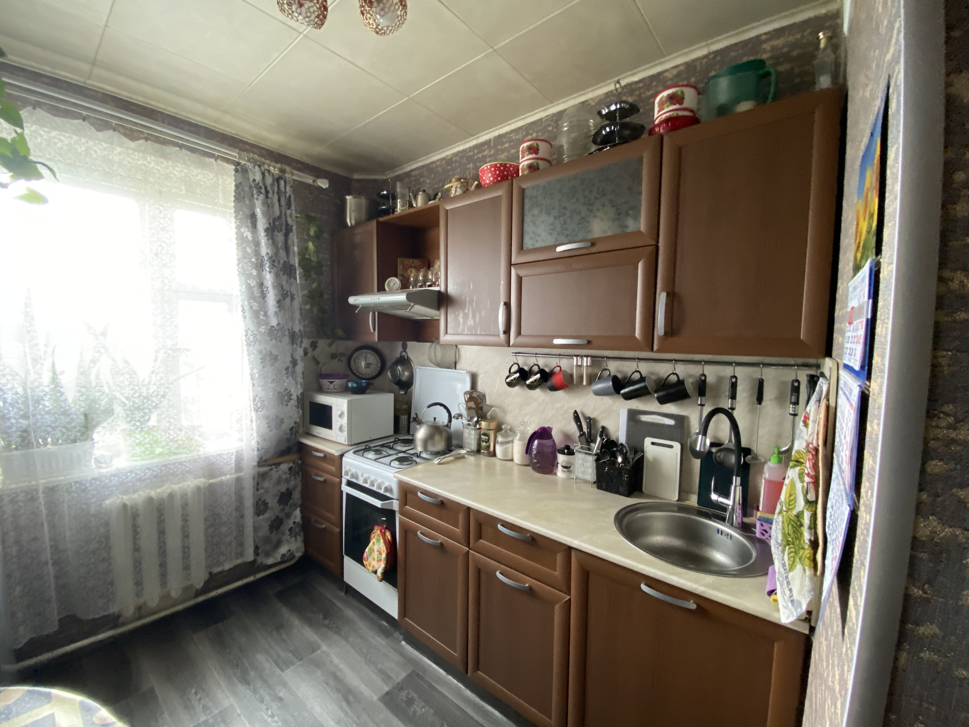 В квартире сделан косметический ремонт, натяжные потолки, пластиковые окна, на полу линолеум премиум класса.