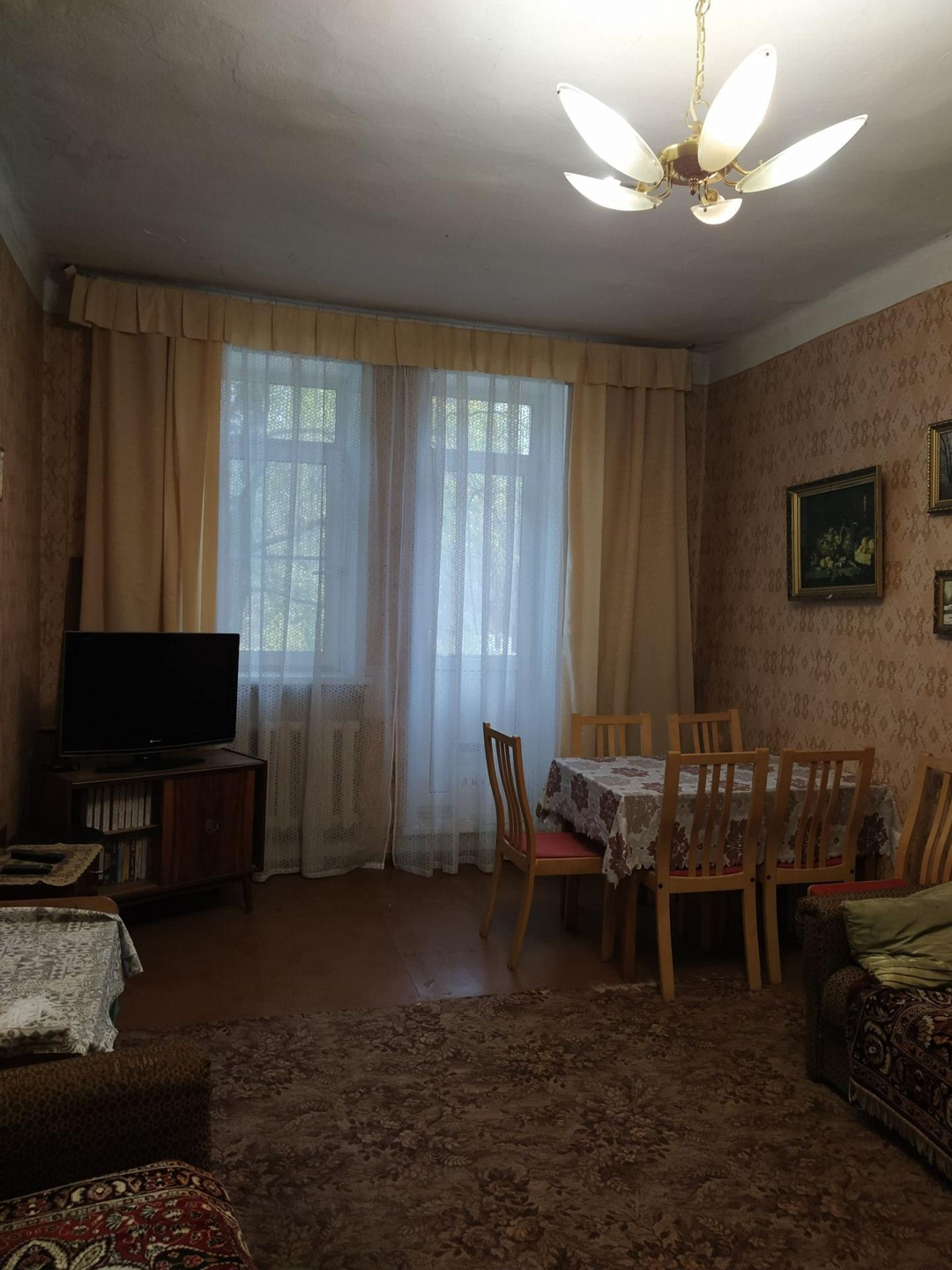 Квартира расположена в зелёной, тихой части села. Большая, тёплая, высокие потолки, комнаты раздельные, просторная ванная комната. Есть две кладовые комнаты. Окна на две стороны, зелёный двор. В квартире два входа - на улицу и во двор. В подъезде шесть квартир, порядочные соседи. Установлены пластиковые окна, заменены коммуникации, чистая, аккуратная, требуется ремонт на усмотрение будущих хозяев. Квартира готова к продаже, один собственник, без обременений и долгов.