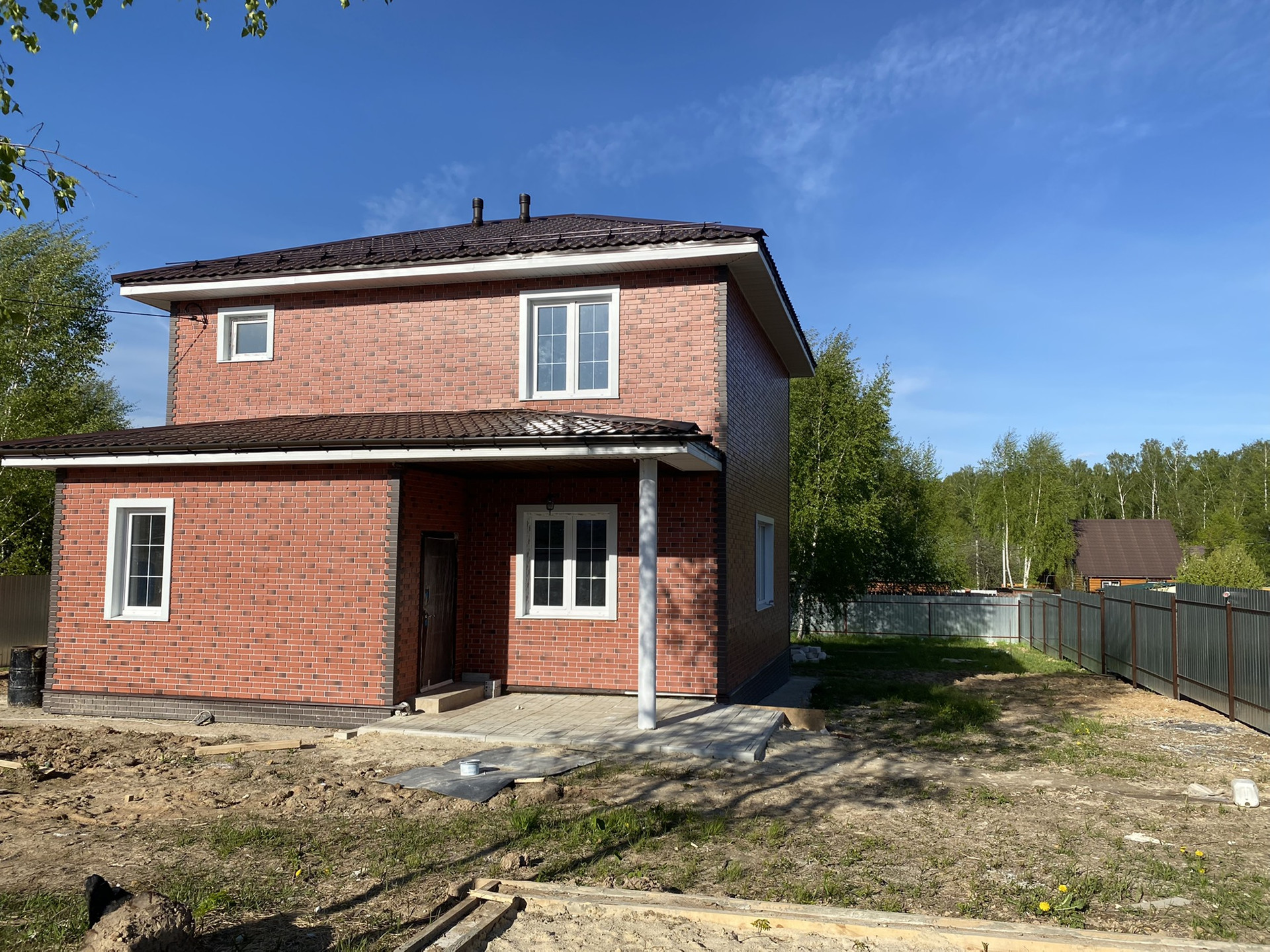 Дом 2 этажа, газоблок, утеплён, внешняя отделка- фасадные панели под кирпич, фундамент- монолитная плита.