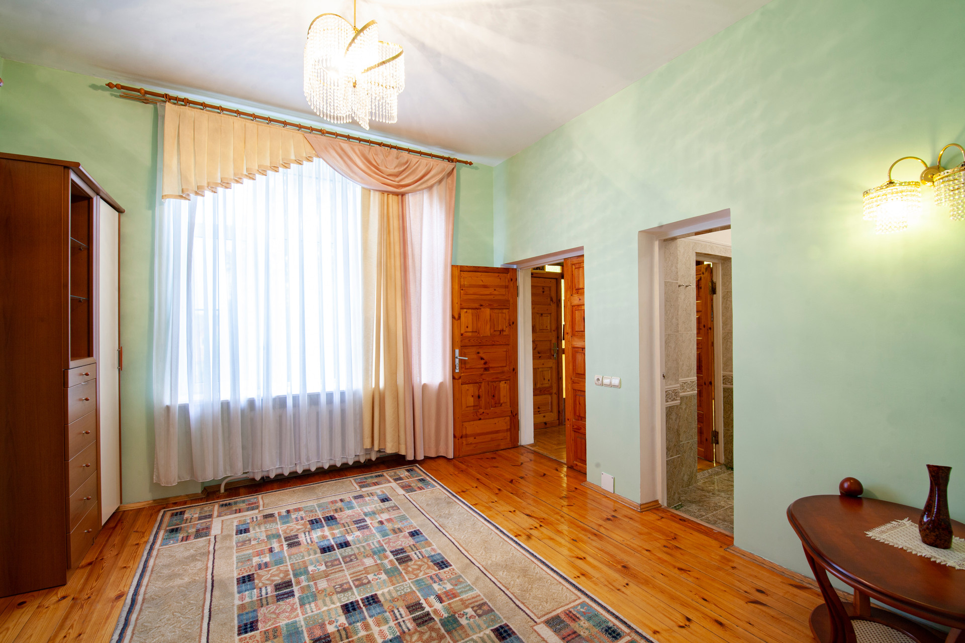 Комнаты светлые, большие с высотой потолков 3 метра.