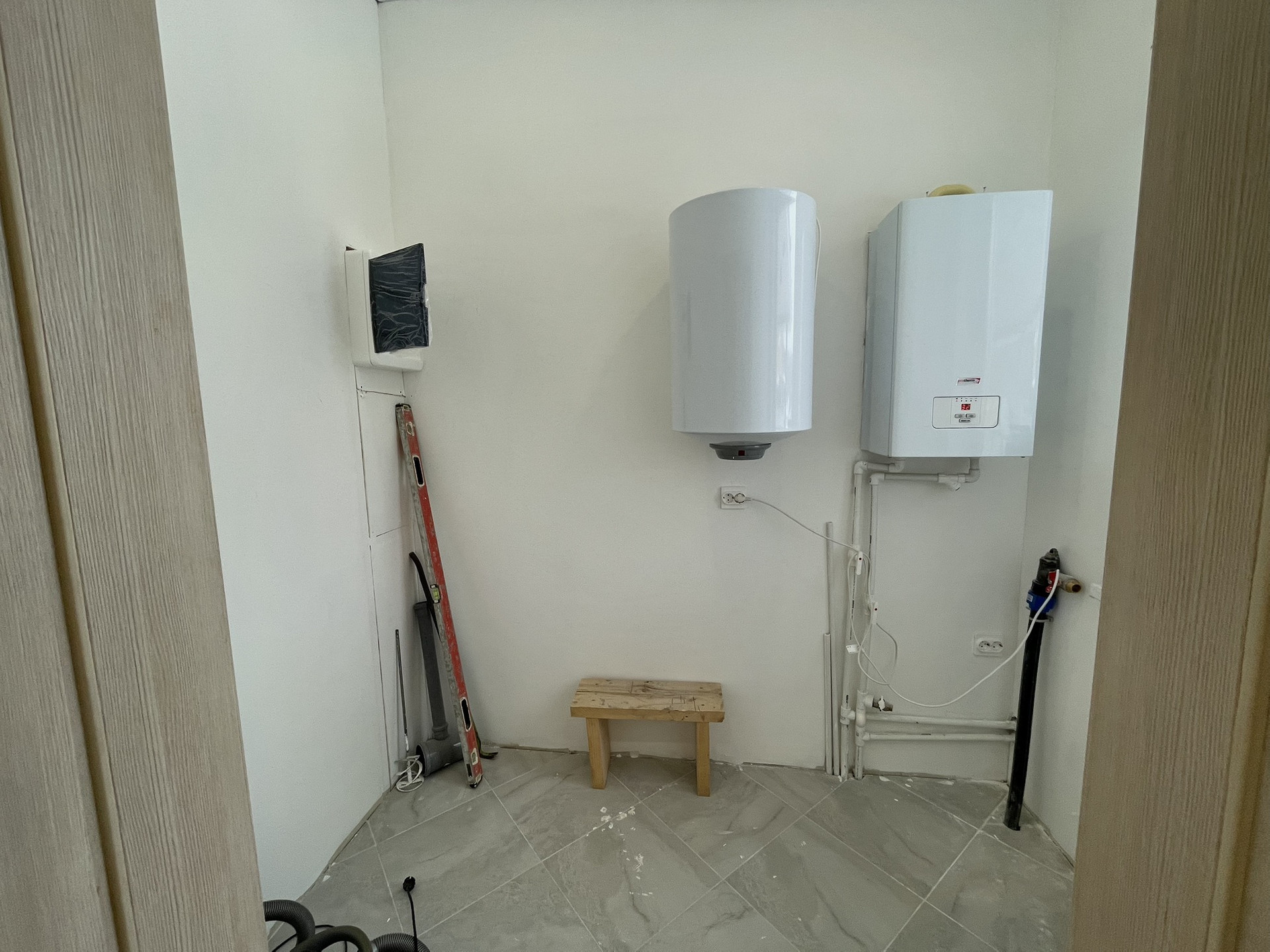 Коммуникации: свет 15 квт, центральное водоснабжение, канализация Топас (автономный), отопление - электрическое (установлен водяной котёл, радиаторы разведены по всему периметру дома), ГАЗ по границе участка.