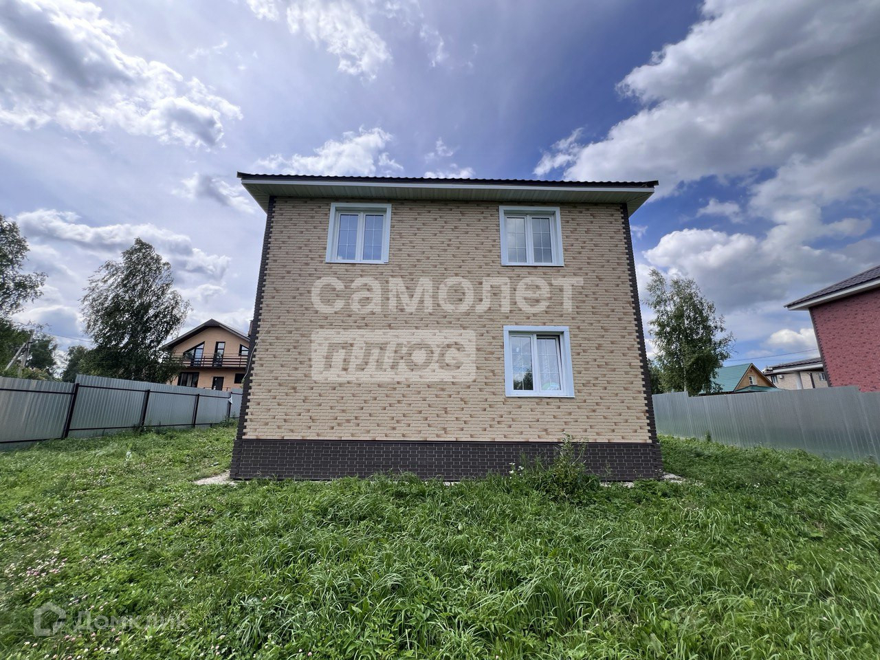 Дом 2 этажа, газоблок, утеплён, внешняя отделка- фасадные панели под кирпич, фундамент- монолитная плита.