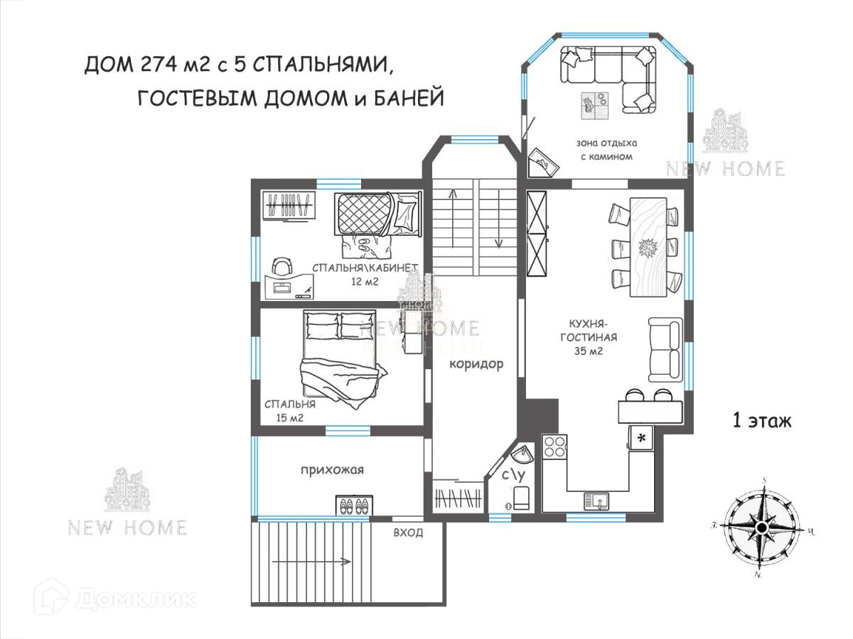• ДОМ 274 м2 с 5 СПАЛЬНЯМИ, ГОСТЕВЫМ ДОМОМ и БАНЕЙ