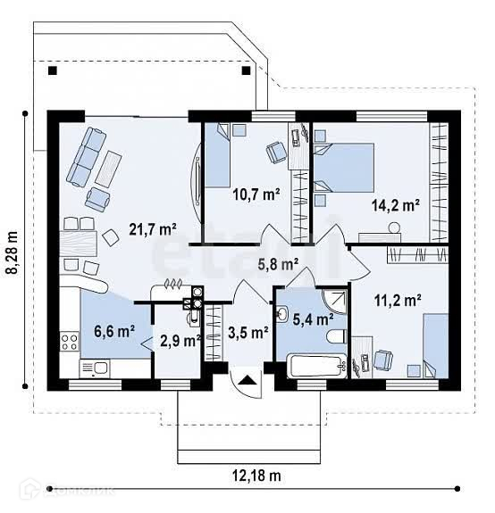 Общая площадь 82 м2
