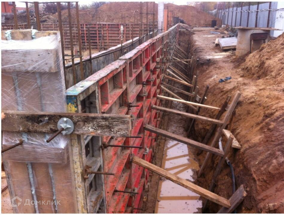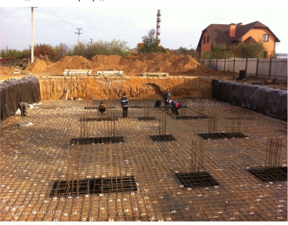 -на участке находится бетонный цоколь, монолит толщиной 0,4 м (делали для себя), площадь 450 м2 (28×16 м.) , на песчаной подушки, высота от чернового пола до плит перекрытия 3,5 м, возвышается над поверхностью участка на 0,6 м.