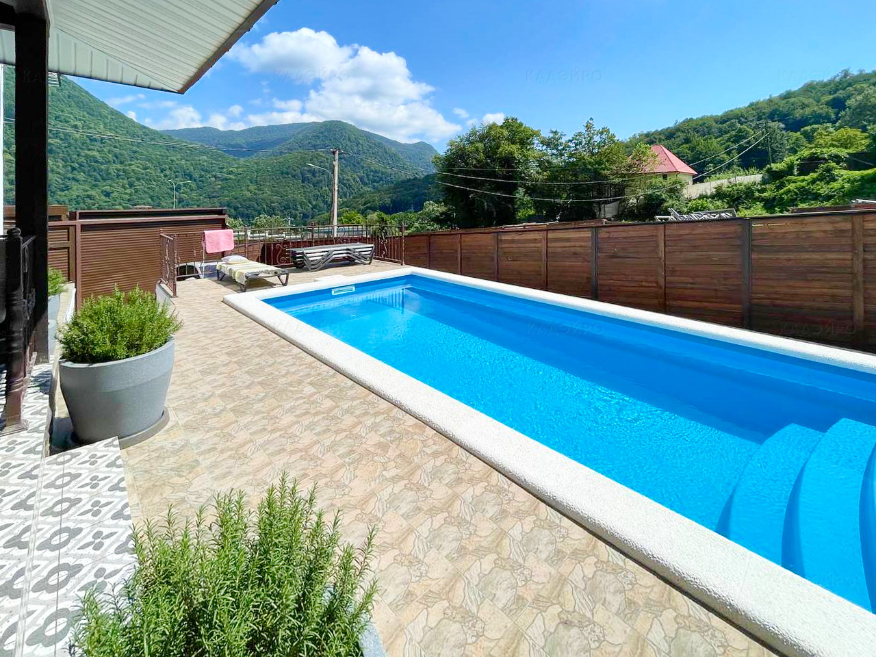 Земельный участок с ровным ланшафтом. На участке бассейн, сауна и зона отдыха с барбекю. Придомовой паркинг на 2 автомобиля.