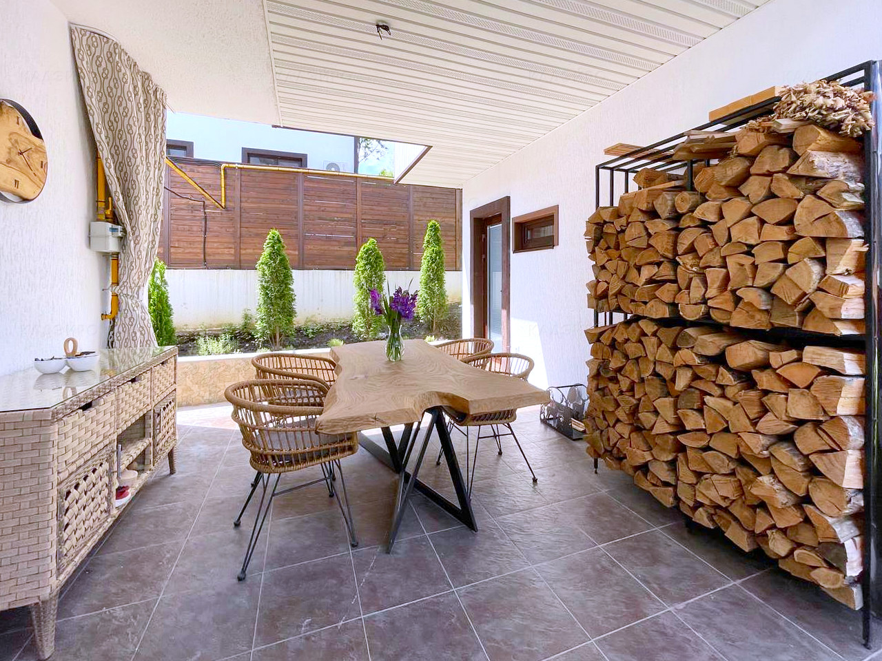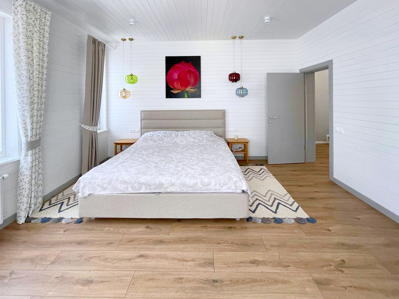 Дизайнерский интерьер в современном стиле. В коттедже 3 спальни. Из окон живописный вид на горы.