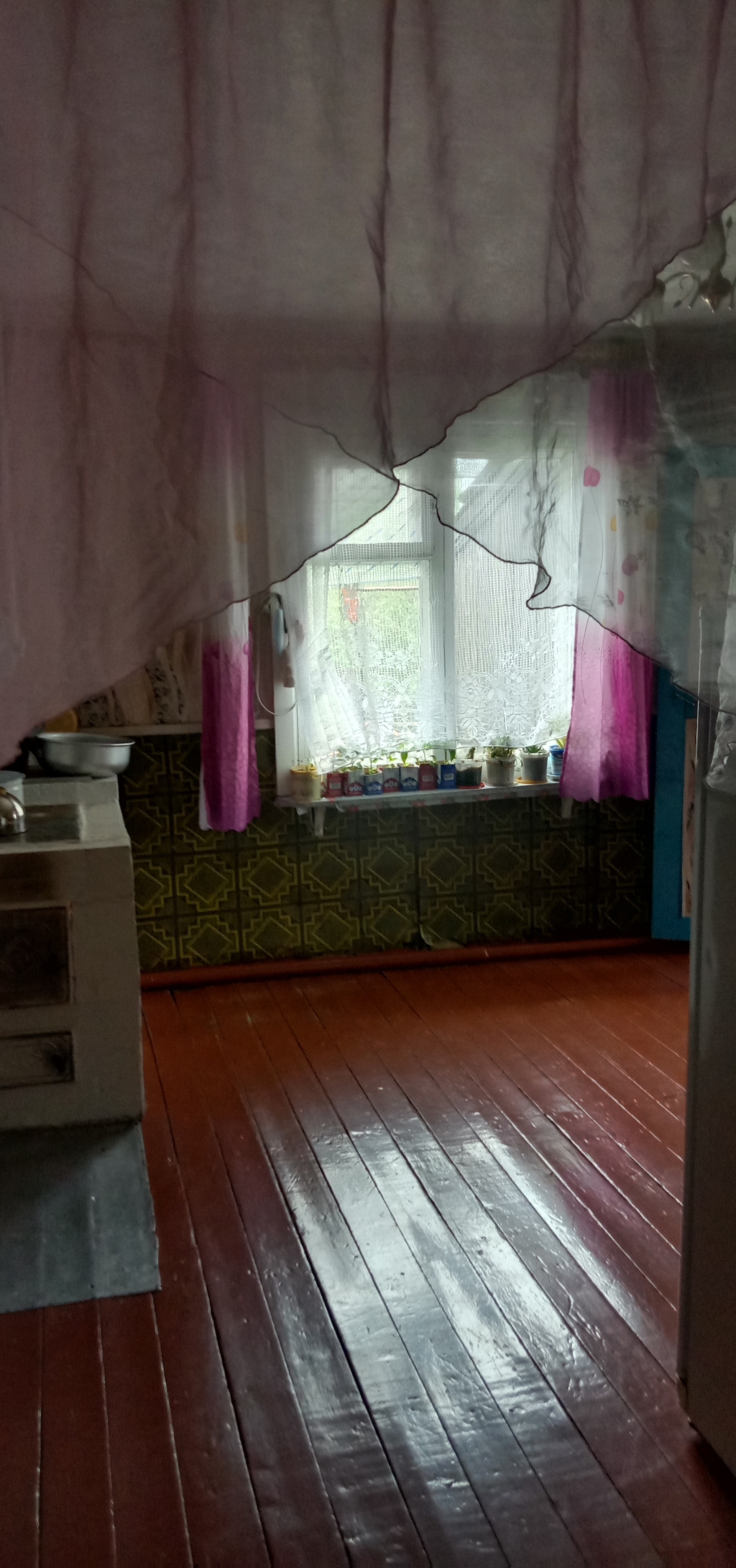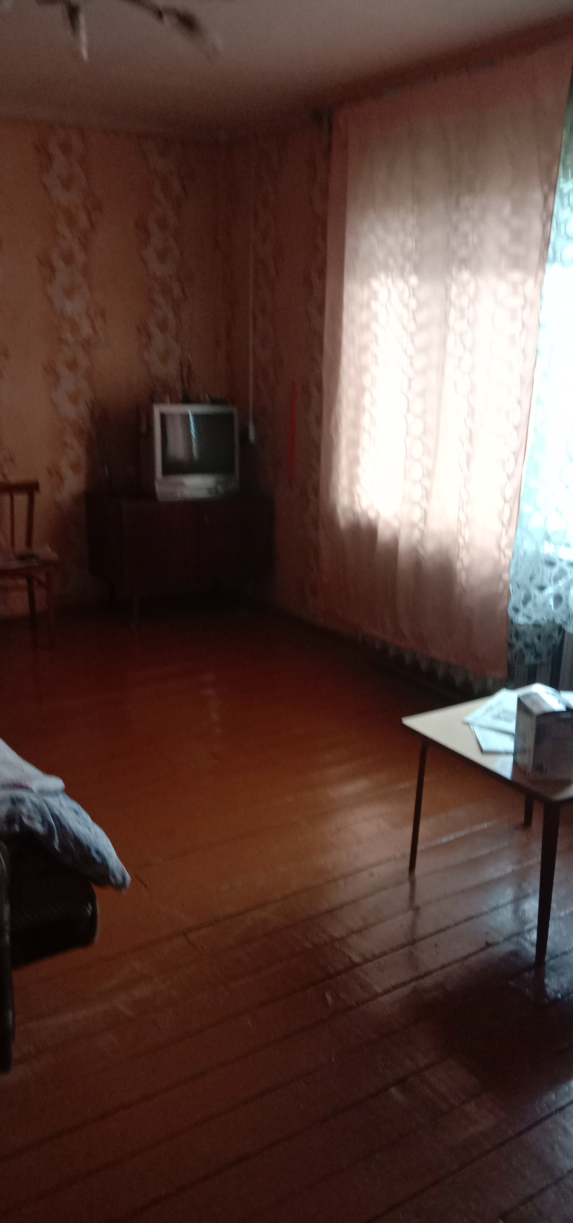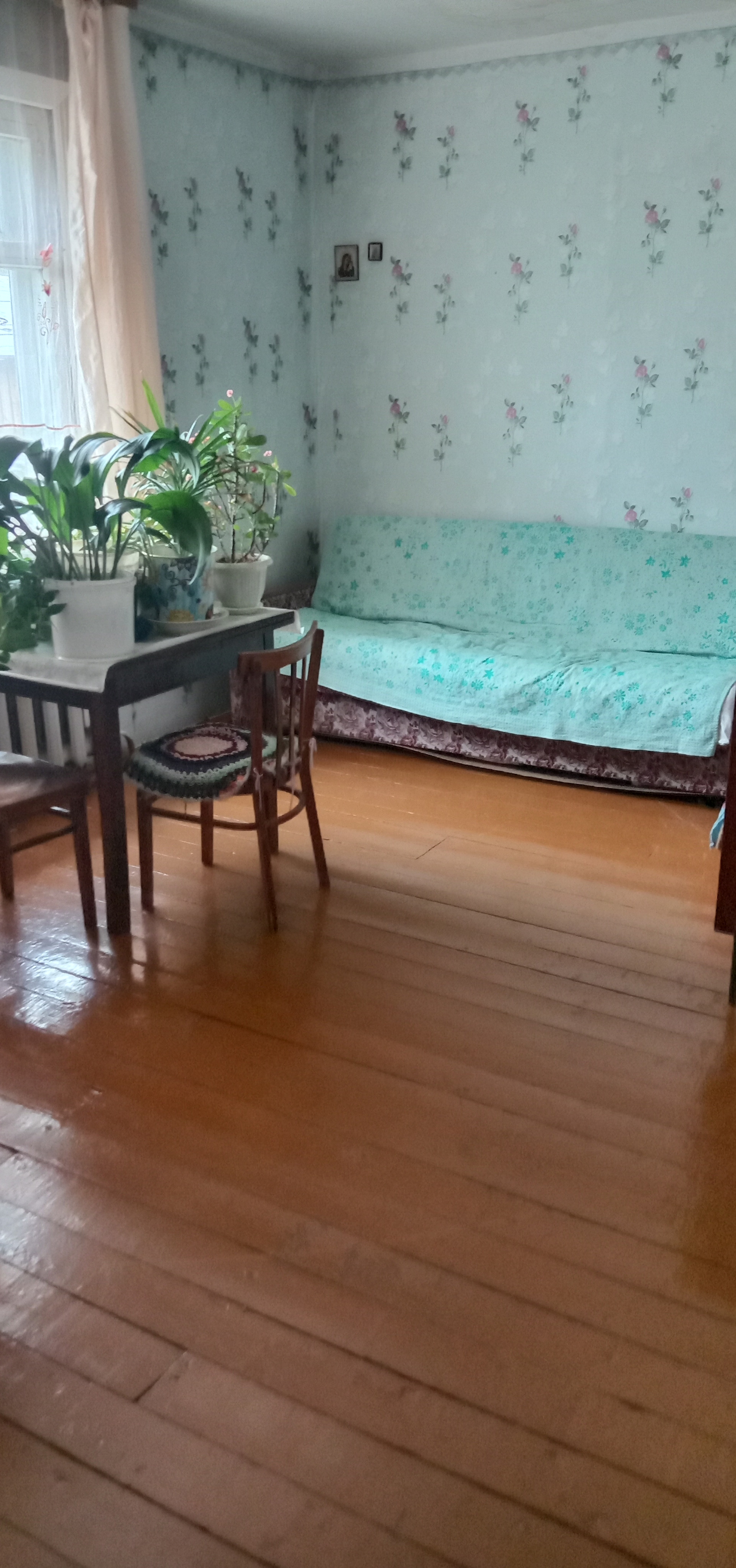 Дом на две семьи (две квартиры). Большая просторная квартира. Ремонт обычный. Печное автономное отопление. Колодец под окном в двух метрах. Есть возможность провести воду в дом, также сделать санузел в доме. Из построек: баня, дровяник с дровами и туалет. Печь перебирали полностью и проводку меняли 2 года назад. Крышу только что покрыли профнастилом. Большой участок: огород, грядки, кусты малины, ирга, черноплодная рябина, смородина, крыжовник. В трех метрах от участка течет ручей. Квартира жилая и ухоженная. В квартире живёт пенсионерка. Соседи хорошие, отзывчивые.
